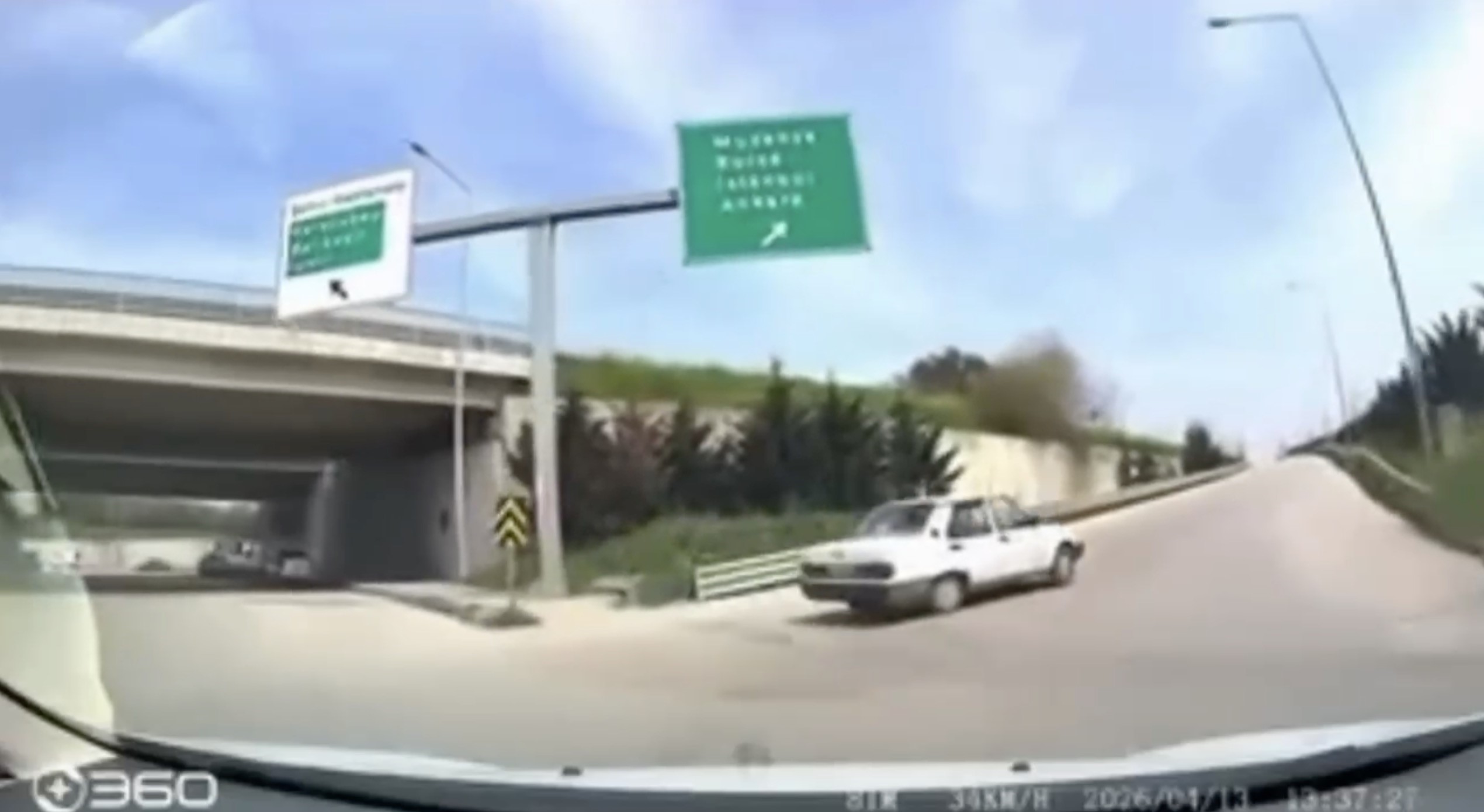 Bursa Şehir Hastanesi Otoban Bağlantı Kavşağı’nda seyir halinde olan bir sürücünün karşısına, ters yönden gelen başka bir araç çıktı. Bursa-Ankara otobanı istikametine geçiş yapmak isteyen sürücünün tehlikeli manevrası, trafikte paniğe neden oldu.