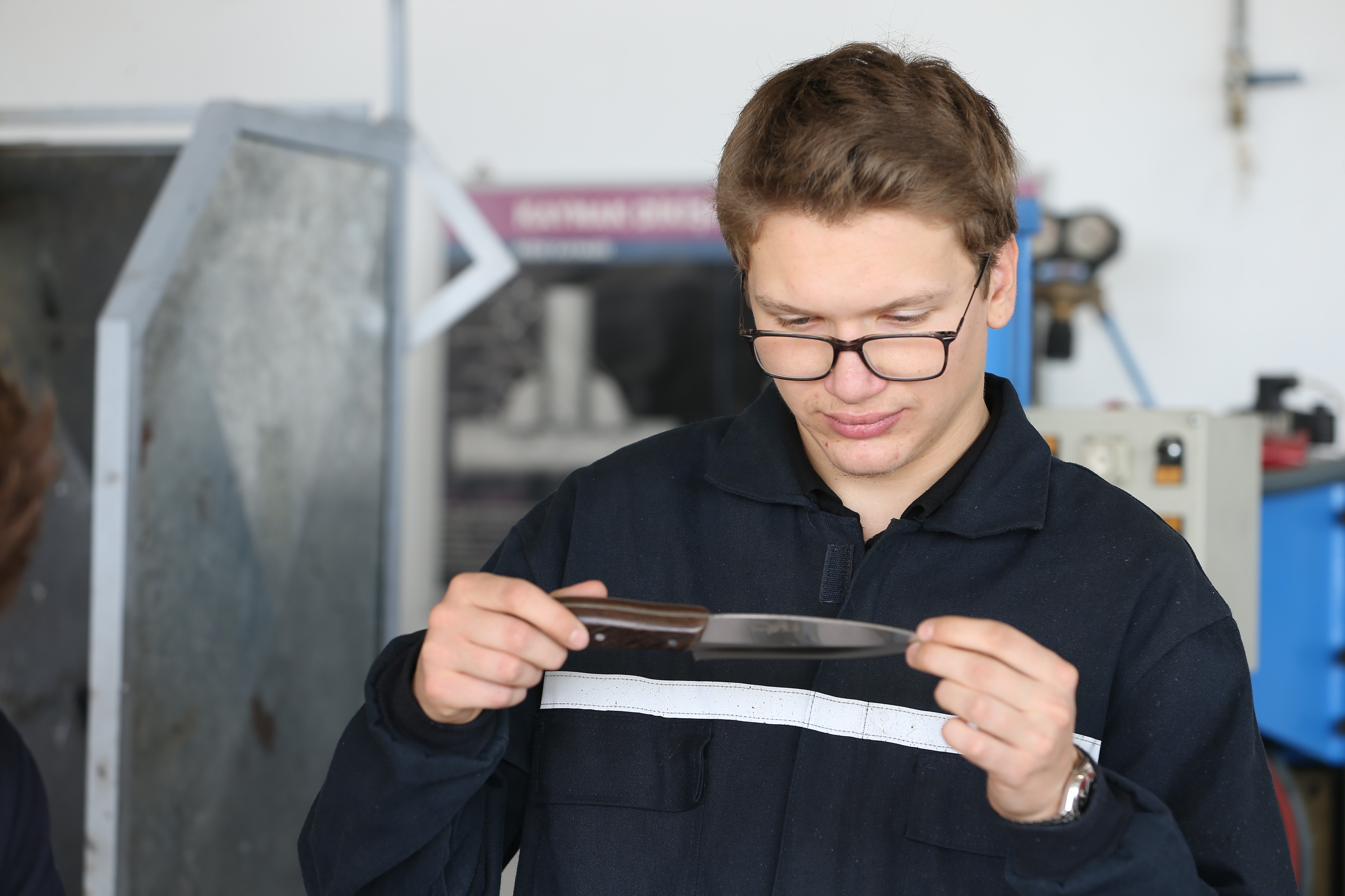 Metal Teknolojisi Alanı 3. sınıf öğrencisi Fevzi Can Öztürk de kendi markalarıyla Bursa bıçağı üretmekten duyduğu mutluluğu dile getirdi.