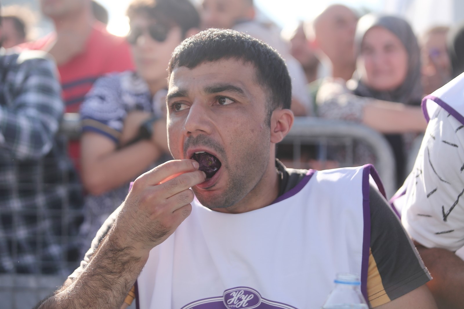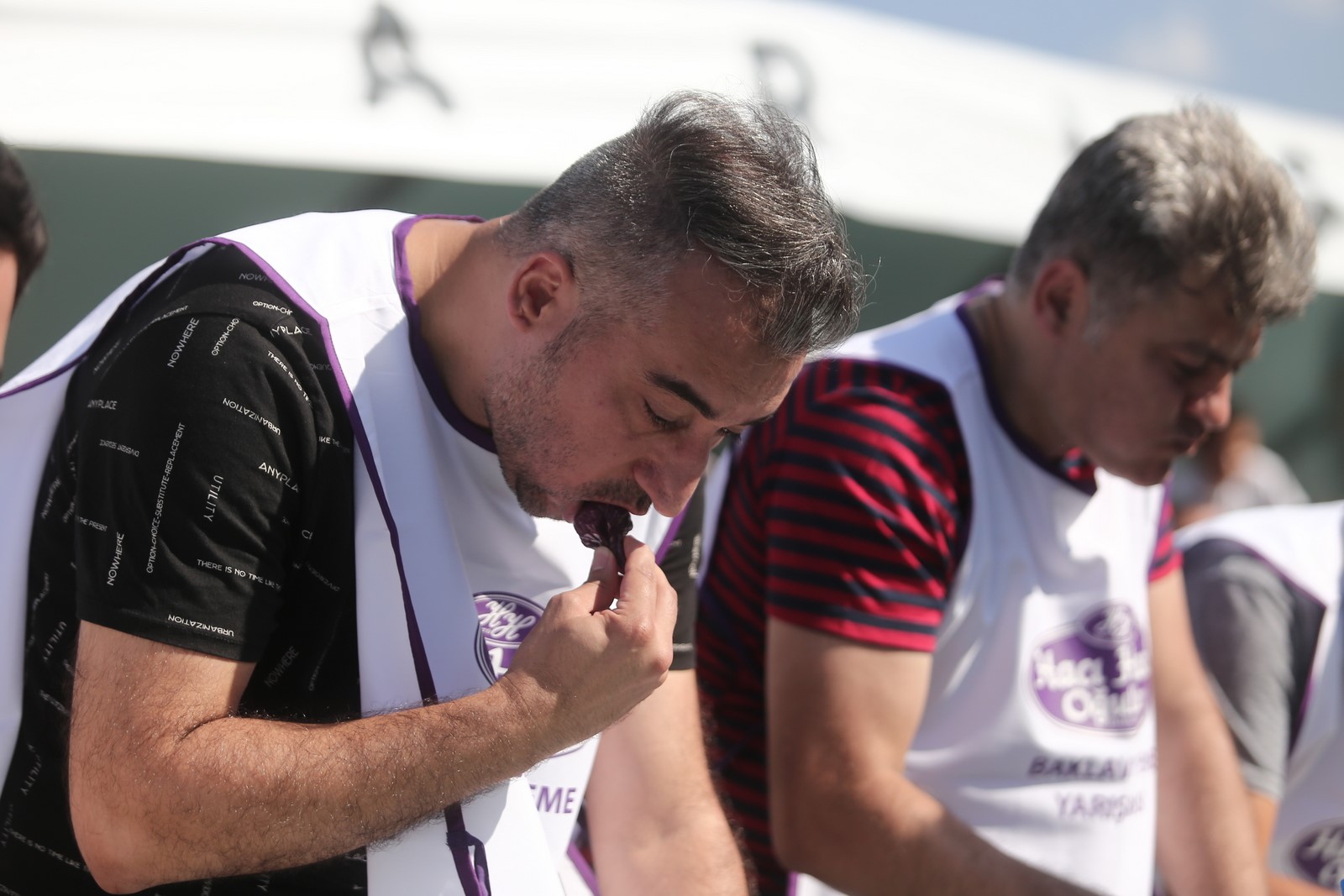 Bursa’nın meşhur lezzetlerinden siyah incirle yapılan baklavalar etkinliğe katılan 17 yarışmacının önüne koyuldu. Oldukça çekişmeli geçen yarışmada dakikalar ilerledikçe yarışmacılar lokmalarını yutmakta zorlanırken, bol bol su tüketildi. Kimi yarışmacı erken pes ederken 6 dakikada 44 dilim baklava yiyen Mehmet Özbek birinci olarak tam altının sahibi oldu.