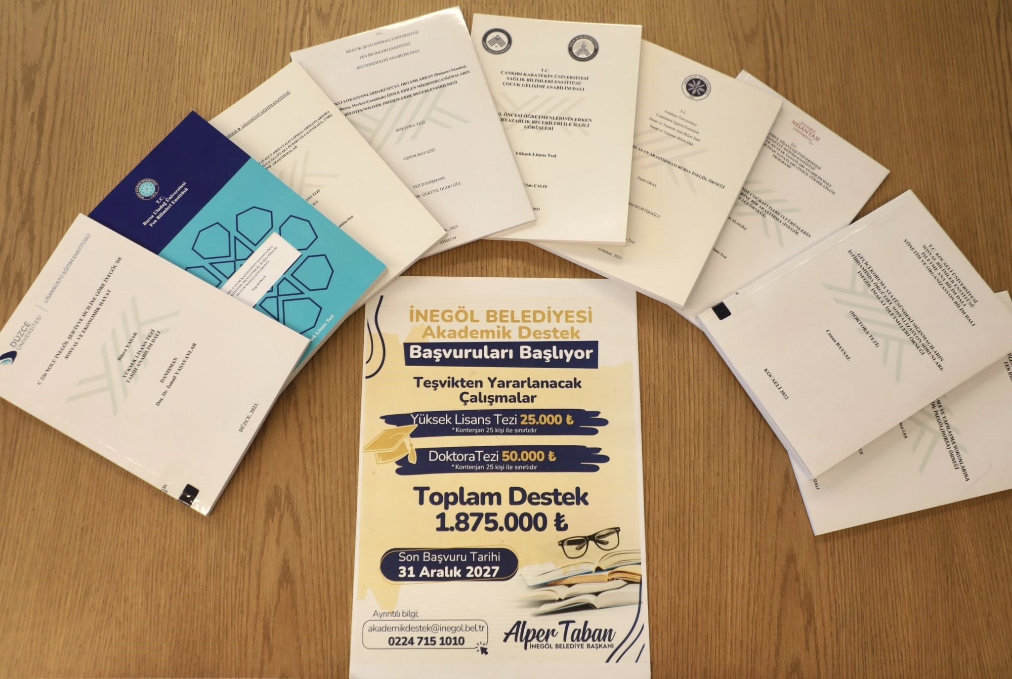 "Akademik Destek Programı kapsamında başvurusu onaylanan kişilere maddi ve maddi olmayan çeşitli destekler sağlanacaktır. Maddi destekler kapsamında; Yüksek lisans tez çalışmaları için 25.000 TL, Doktora tez çalışmaları için 50.000 TL destek verilecektir. Bunun haricinde ilave destekler de var. Konaklama, İnegöl içi ulaşım, rehberlik hizmeti, talep edilen veri ve bilgi paylaşımı gibi imkanlar sağlanacak. Toplamda yaklaşık 2 milyon TL’ye yakın bir destek sağlanmış olacak. Maddi desteklerin %50’si araştırma sürecinde, kalan yüzde 50’si ise çalışmanın tamamlanarak ilgili enstitü tarafından kabul edilmesinin ardından ödenecektir."