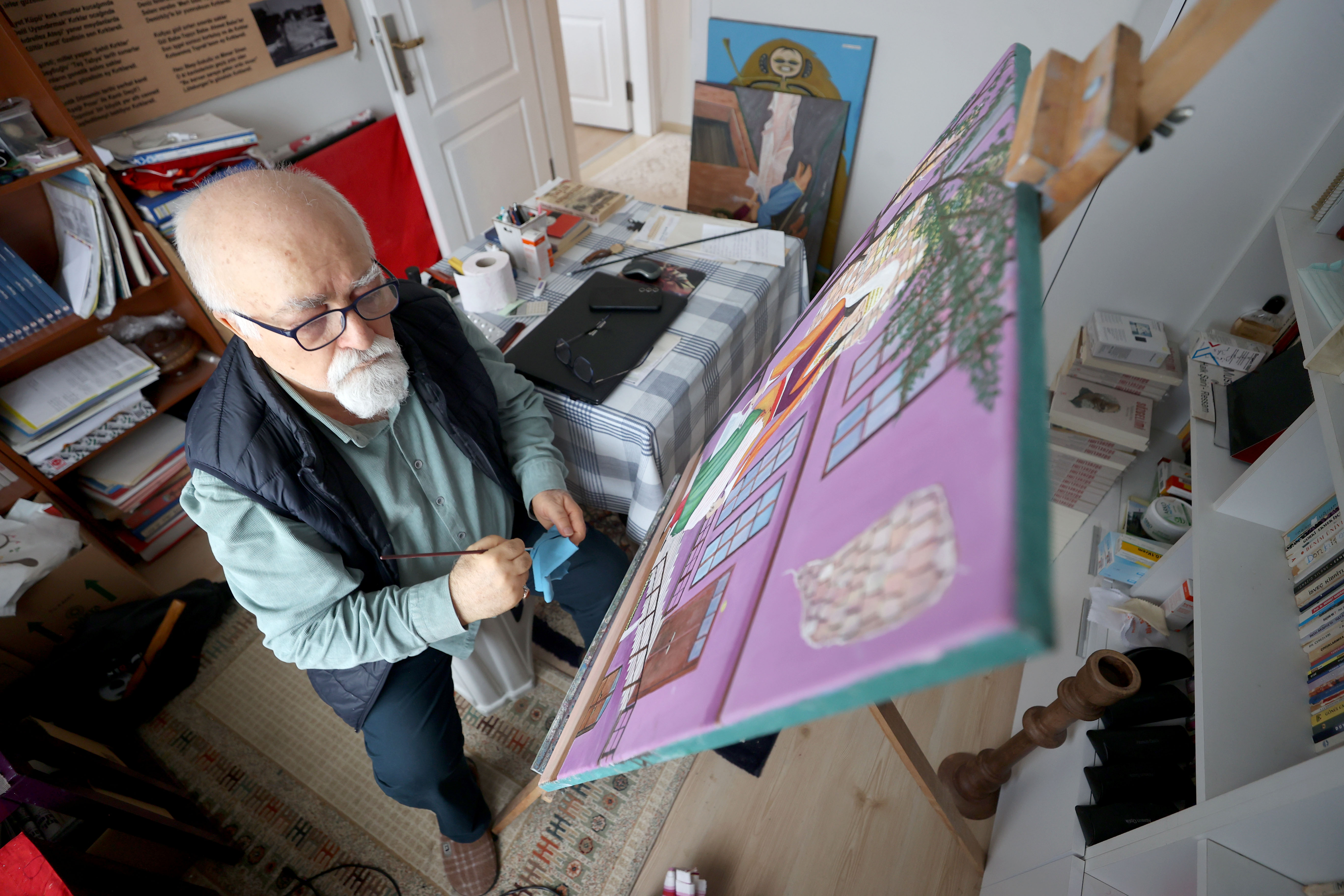 Karagöz'ün hayatını konu alan bir kitap yazan Ermiş, emekli olduktan sonra evinin bir odasını atölyeye dönüştürerek yaklaşık 20 yıldır gölge oyunu karakterlerini resmediyor.