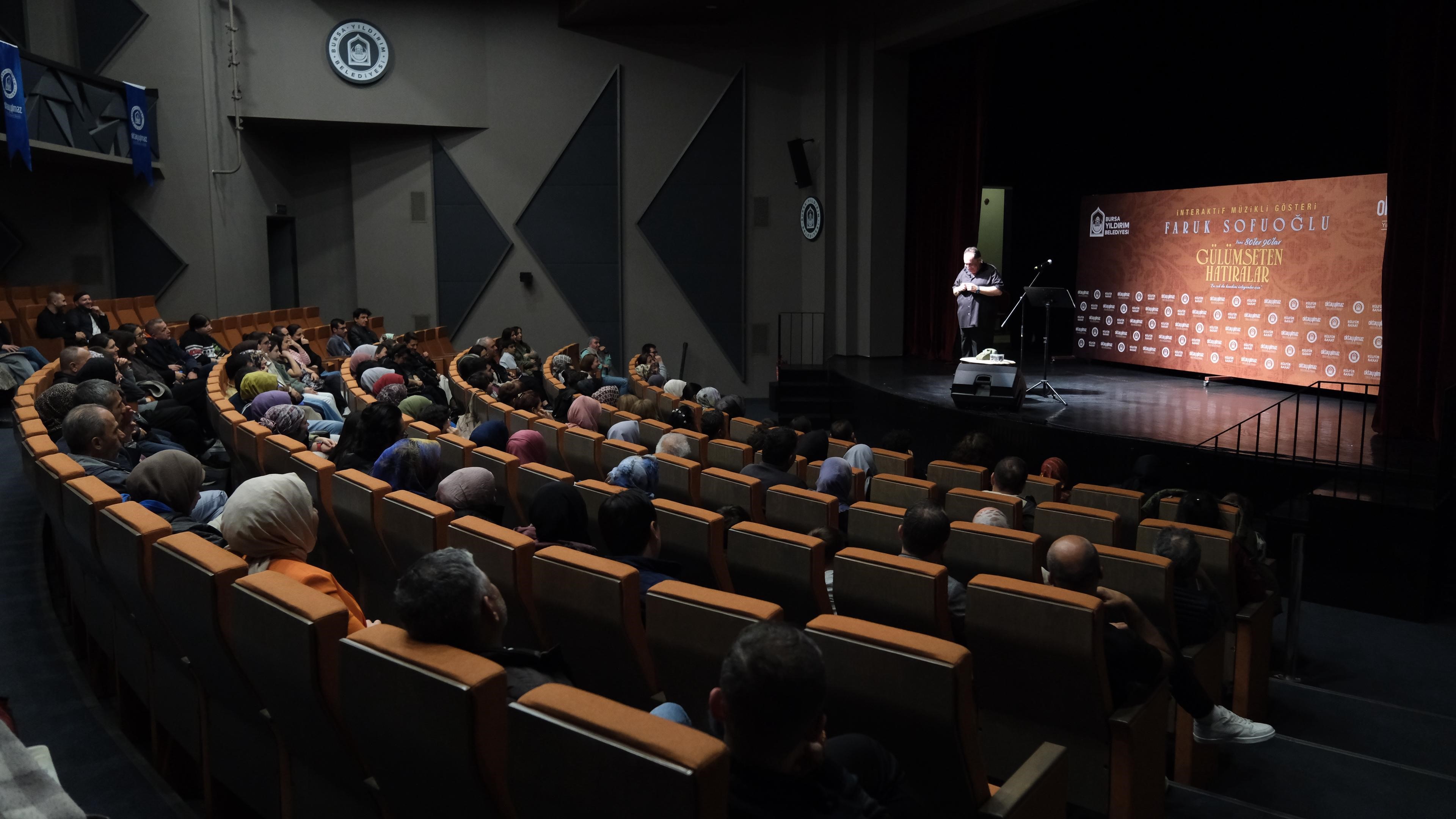 Faruk Sofuoğlu'nun başrolünde olduğu gösteri, dönemin unutulmaz şarkılarını, sokak kültürünü, çocuk oyunlarını, aile ilişkilerini ve mahalle yaşamını eğlenceli bir üslupla Yıldırımlılarla buluşturdu. İzleyiciler, Faruk Sofuoğlu'nun performans ve anlatıları, Evrim Kırcı'nın seslendirdiği nostaljik şarkılar ile eğlence dolu unutulmaz bir akşam yaşadı.