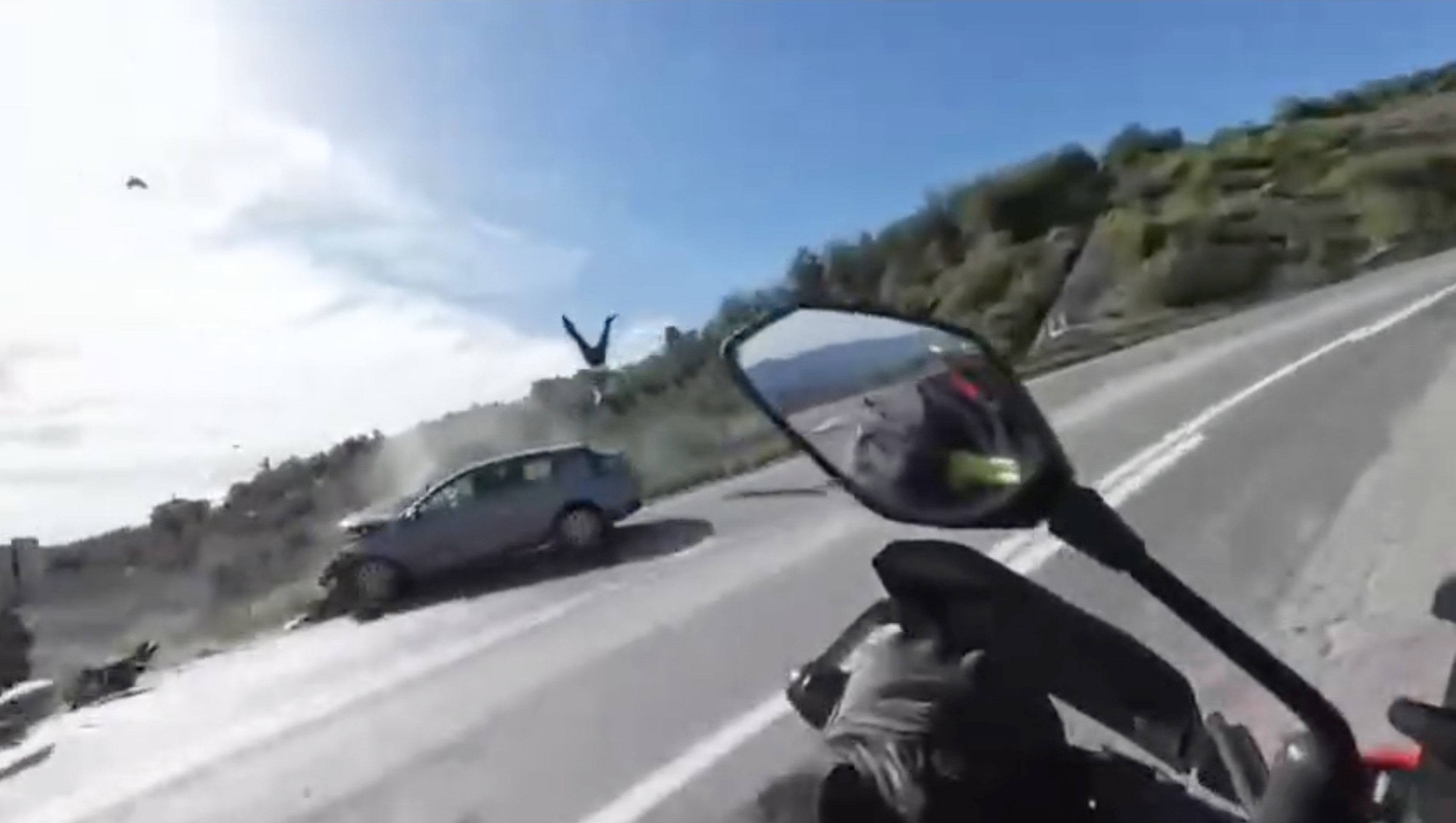 Bursa'nın İznik ilçesi ile Sakarya Pamukova arasındaki karayolunda hatalı sollama yapan motosiklet sürücüsü otomobille çarpıştı. 59 yaşındaki motosiklet sürücüsü hayatını kaybederken, kaza anı başka bir motosikletin kask kamerasına saniye saniye yansıdı.