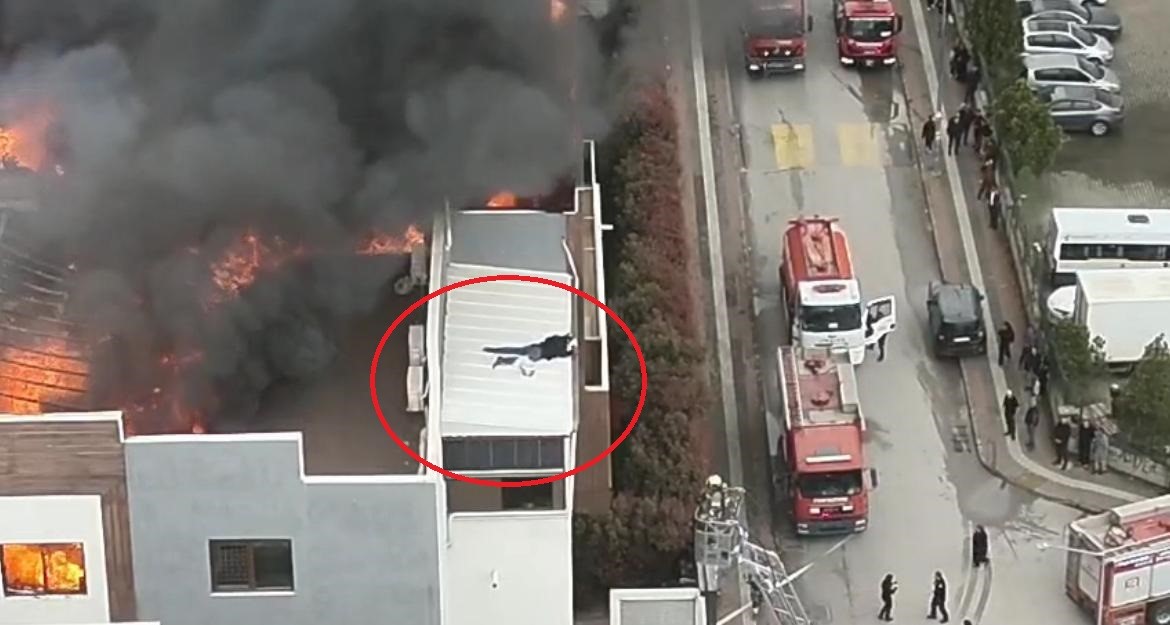 Yoğun dumanı fark eden vatandaşların ihbarı üzerine olay yerine çok sayıda itfaiye, sağlık ve polis ekibi sevk edildi. Alevlerin hızla yayılmasıyla çatı katında mahsur kalan bir işçi, ekiplerin müdahalesiyle metrelerce yüksekteki alevlerin arasından son anda kurtarıldı. Kurtarma anları kameraya yansıdı.