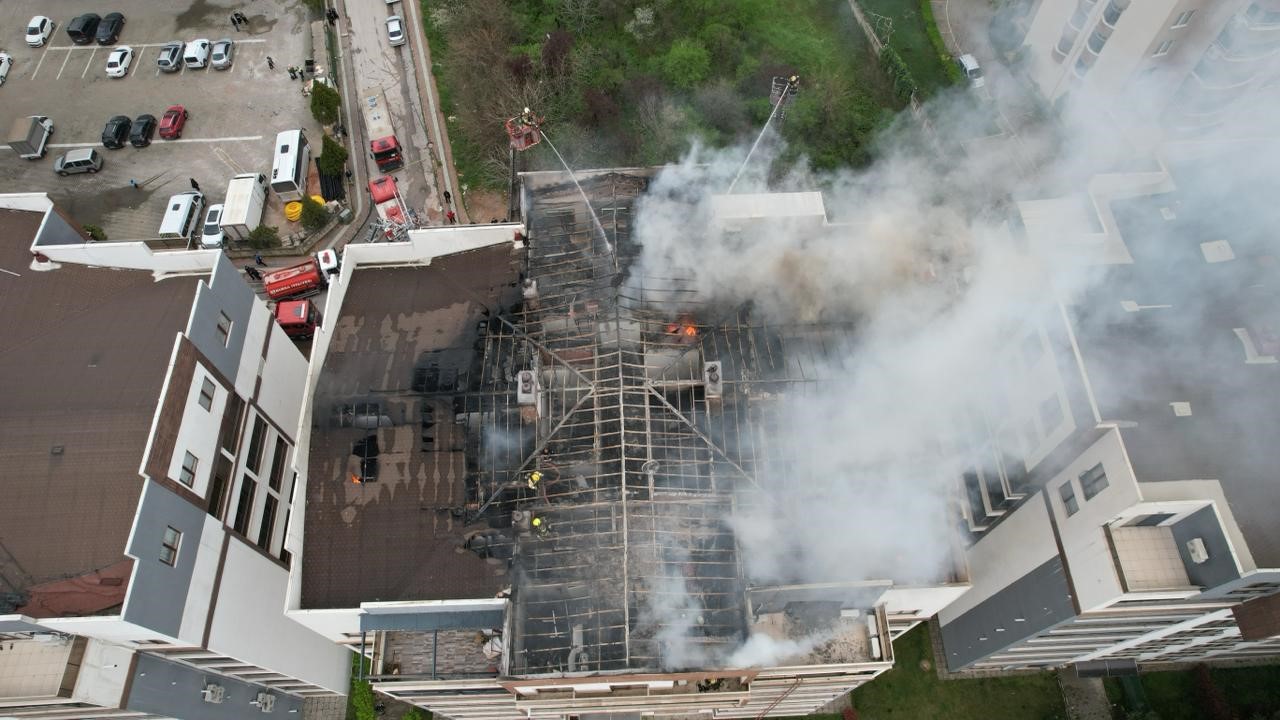 Öte yandan yangın anı dron ile havadan görüntülendi. Görüntülerde çatı katını saran alevler ve gökyüzünü kaplayan yoğun duman dikkat çekti.