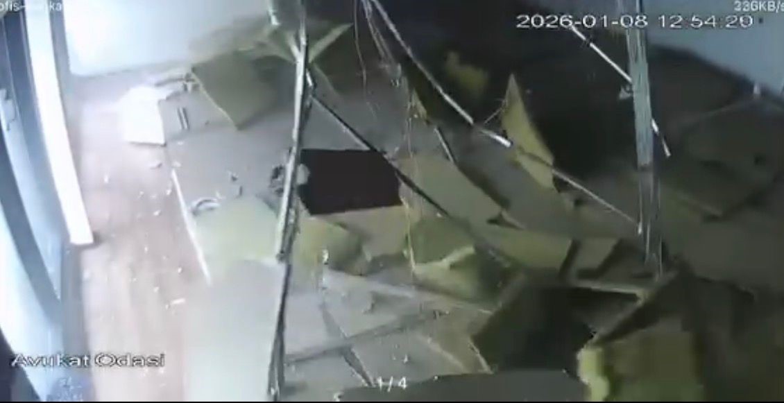 Görüntülerde, vatandaşların tavanın çökmesiyle birlikte hızla kaçtığı ve kıl payı kurtulduğu görüldü.