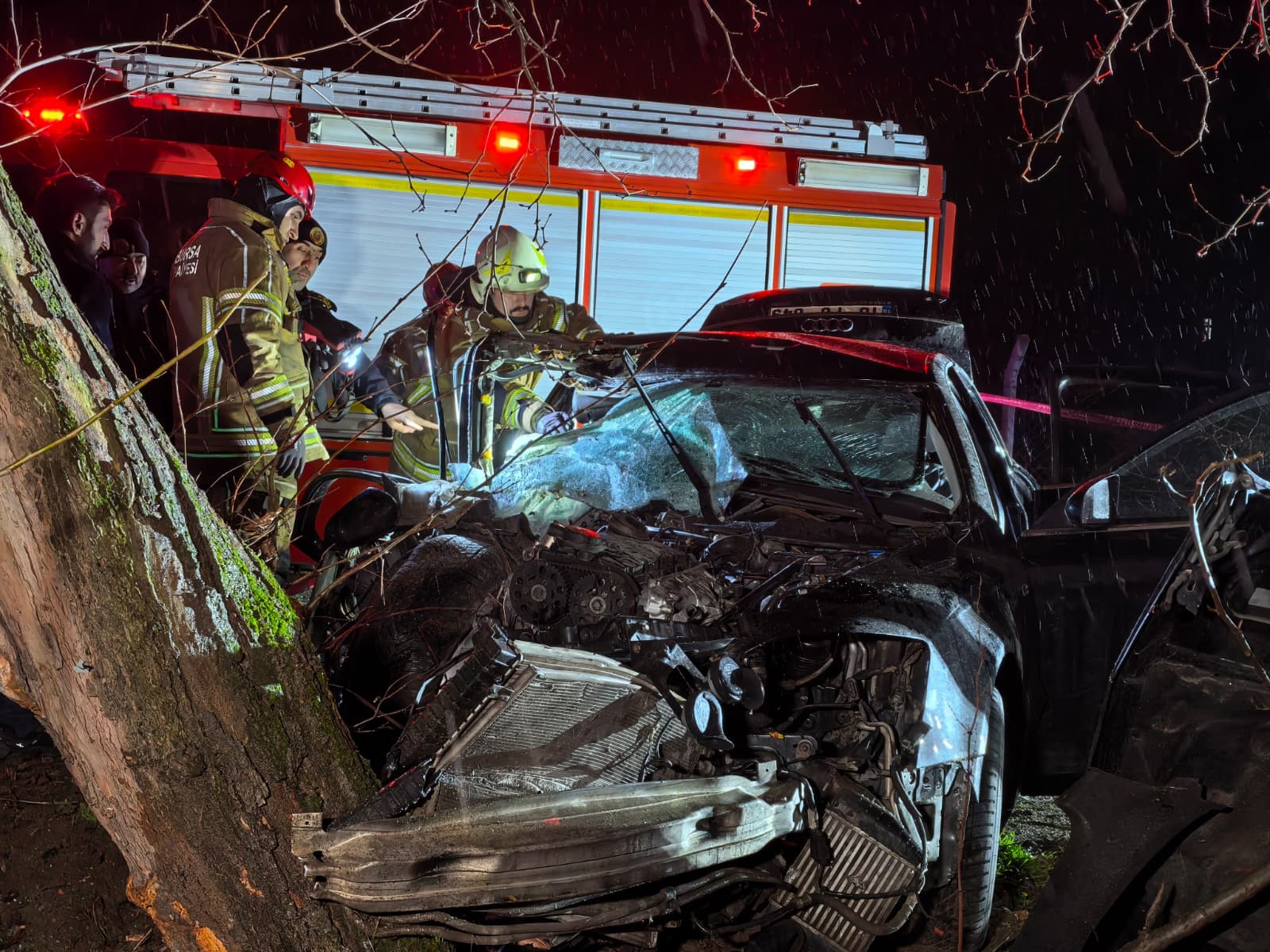 Bursa'nın İnegöl ilçesinde meydana gelen kazada kontrolden çıkan otomobil ağaca çarptı. Meydana gelen kazada 2 kişi hayatını kaybetti, 2 kişi de yaralandı.