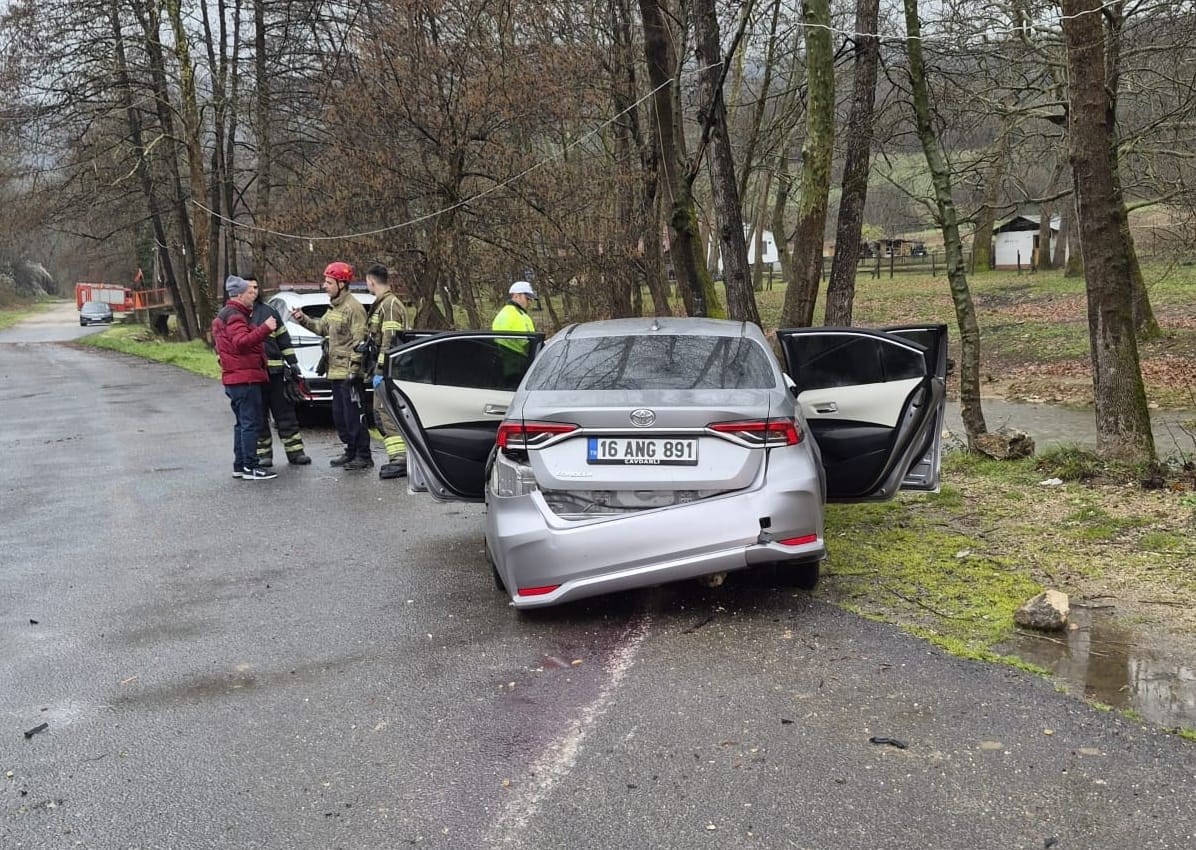 Kazada sürücü ve araçtaki eşi Şeyma A. (34), çocukları Sadık A. (11) ile 2 aylık Kerem A. yaralandı. Yaralılar, ambulansla İnegöl Devlet Hastanesine kaldırıldı.