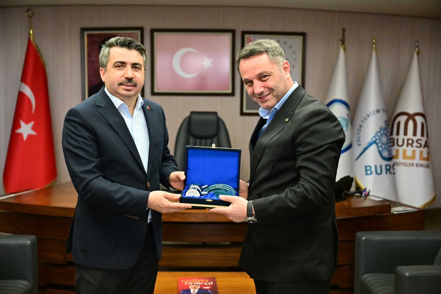 Yıldırım Belediye Başkanı Oktay Yılmaz, Harita ve Kadastro Mühendisleri Bursa Şube Başkanı Faruk Çolak, Şehir Plancıları Odası Bursa Şube Başkanı Cenk Köklü, İnşaat Mühendisleri Odası Bursa Şube Başkanı Serdar Atilla, Mimarlar Odası Bursa Şube Başkanı Şirin Rodoplu ve yöneticilerini ağırladı.