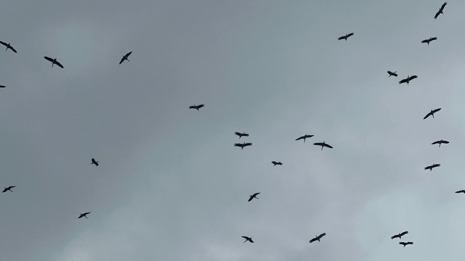 Bursa'ya Kestel ilçesi tarafından Gölbaşı üzerinden giren leylek sürüsü, yağmura rağmen yoluna devam etti.