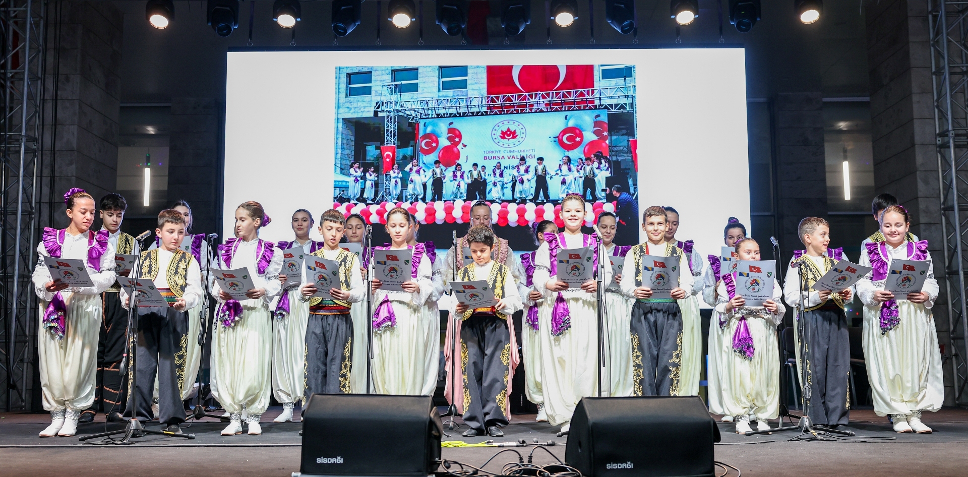 Gecede, Bursa Bosna Sancak Yardımlaşma Dayanışma ve Kültür Derneği’nin gençlerden oluşan folklor ekibi sahne aldı. Balkanların zengin müzik kültürlerinden örnekler sunan ekip, şarkıların ardından sergiledikleri yöresel dans performanslarıyla da alanı dolduran izleyicilerden tam not aldı.