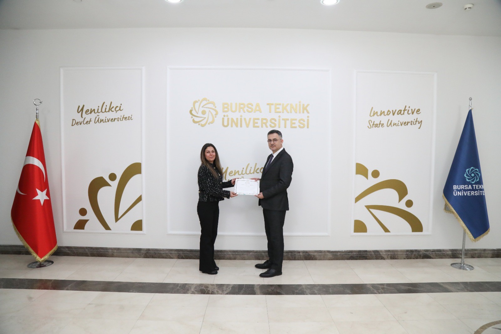 Kamuda fiili hizmet süresini 20 ve 30 yıl arasında tamamlayan Bursa Teknik Üniversitesi personeli için geleneksel ödül töreni düzenlendi. Mimar Sinan Yerleşkesi’nde gerçekleşen programa; BTÜ Rektörü Prof. Dr. Naci Çağlar, Rektör Yardımcıları Prof. Dr. Beyhan Bayhan ile Prof. Dr. Barış Tamer Tonguç ve Genel Sekreter Selim Uzun katıldı. Törende, "Vefa Ödülü" almaya hak kazanan 9 personele plaket ve belgeleri, "İdari Hizmet Belgesi" almaya hak kazanan 17 personele ise idari hizmet belgeleri takdim edildi.