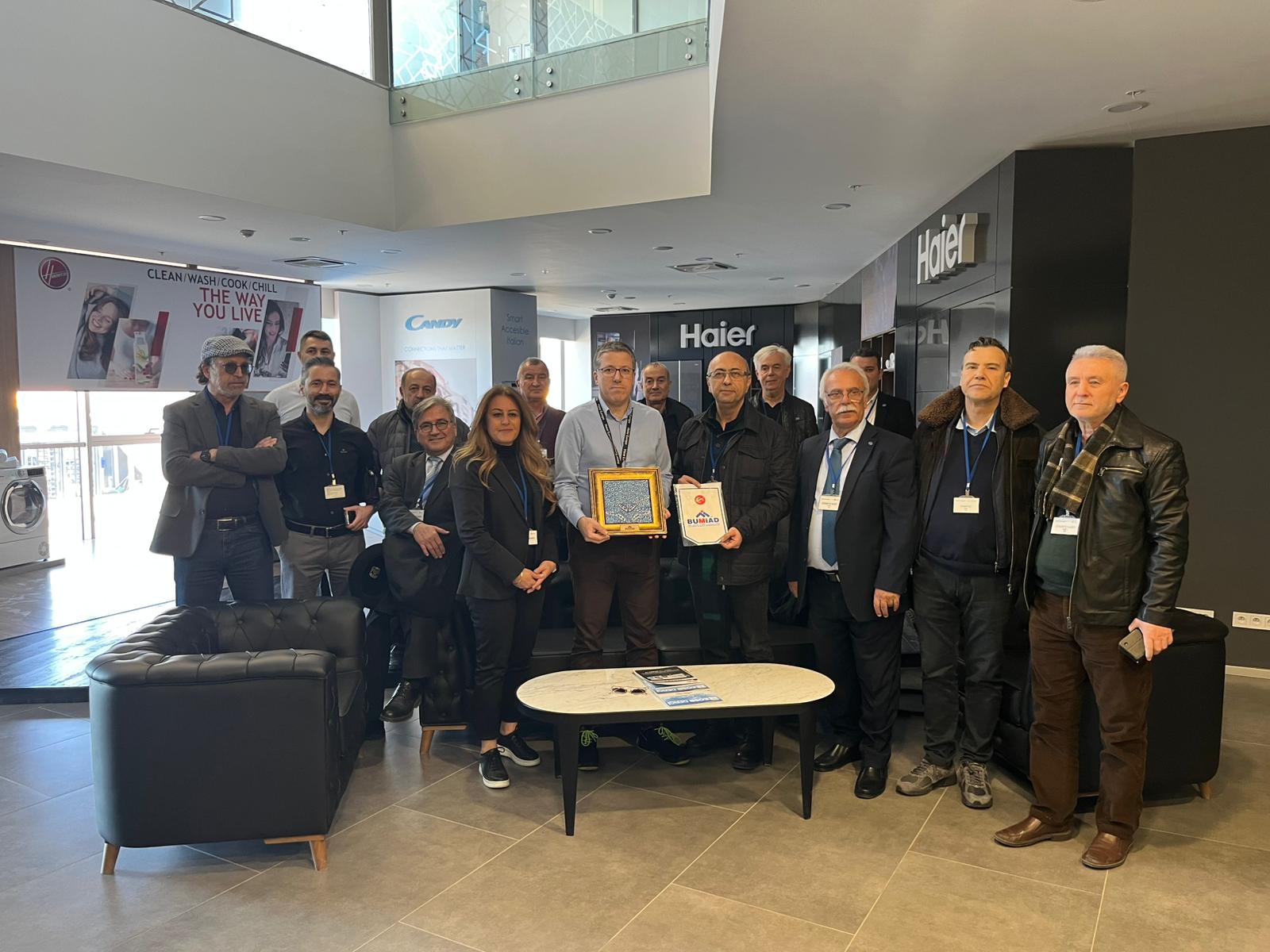 Son olarak üyeleri ile birlikte Eskişehir’de üretim yapan beyaz eşya üreticisi Haier firmasının tesislerini ziyaret eden BUMİAD Yönetimi, Haier yetkililerinden üretim süreçleri, teknolojileri ve faaliyetleri hakkında bilgiler aldı.