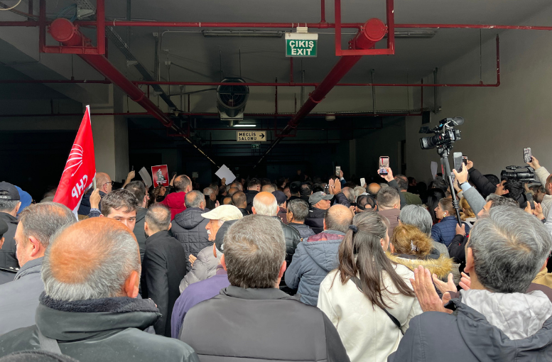 Polis tedbirini sürdürürken, belediye binasındaki gerginlik de devam ediyor.