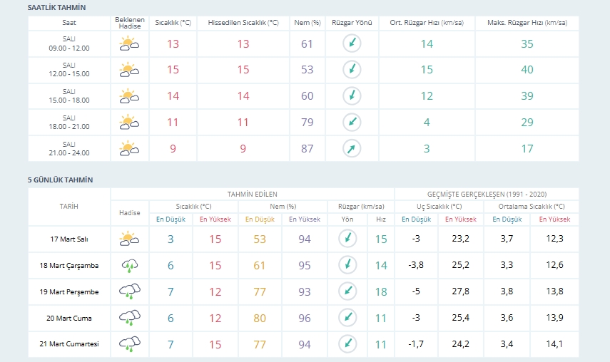 Öte yandan 5 günlük tahmin raporuna göre Bursa’da Çarşamba, Perşembe ve Cuma günleri sağanak yağış etkili olacak. Söz konusu günlerde hava sıcaklıklarının 12 ila 15 derece aralığında seyretmesi öngörülüyor.