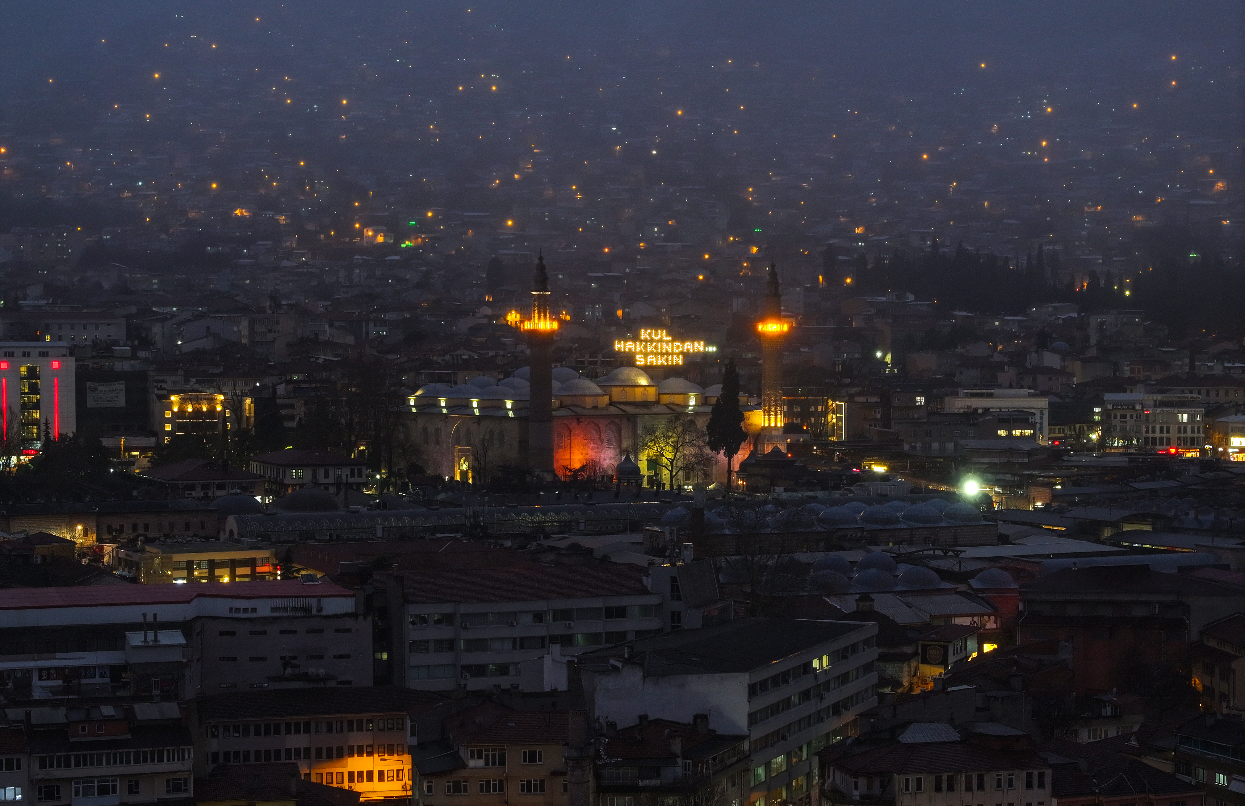 Osmanlı Devleti’nde ilk kez Sultanahmet Camii’ne asılmasıyla başlayan ve yaklaşık 400 yıldır sürdürülen mahya geleneği, Bursa’da da yaşatılmaya devam ediyor. Akşam ezanıyla birlikte yanan ışıklar, tarihi caminin siluetine ayrı bir ihtişam katarken, ortaya çıkan manzara vatandaşlardan büyük ilgi gördü.