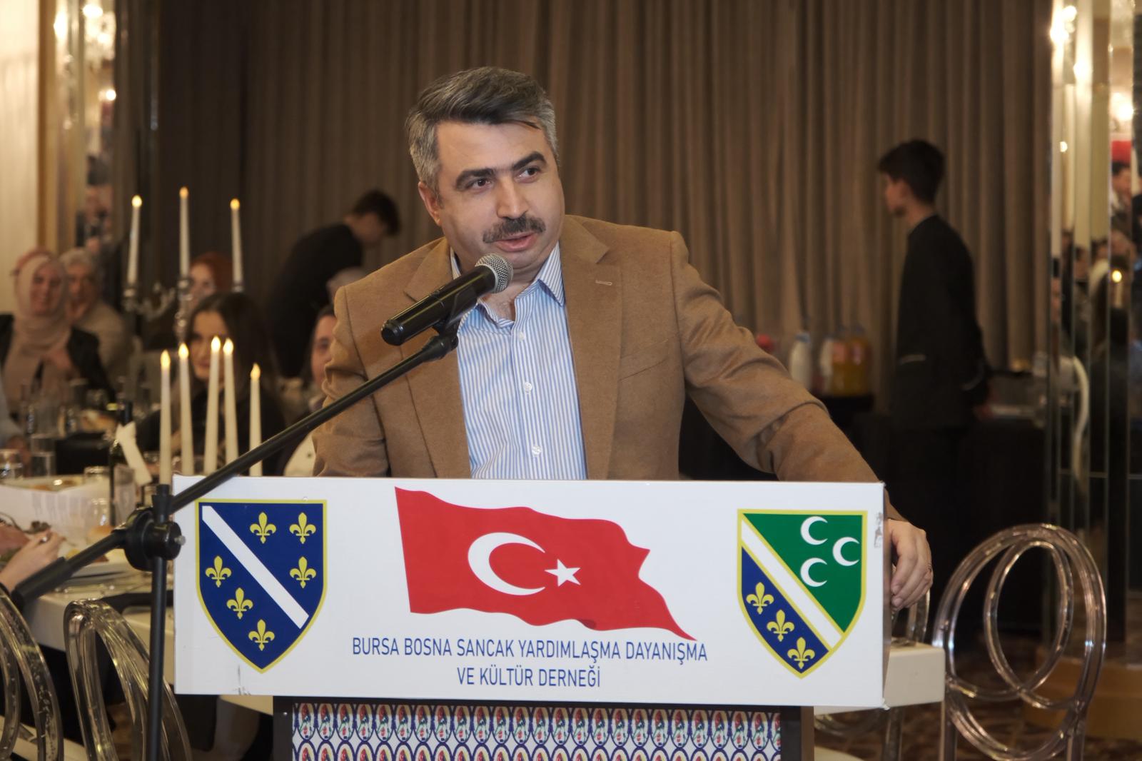 Bursa Büyükşehir Belediyesi Başkan Vekili Mehmet Aydın Saldız, konuşmasında Bursa’nın kültürel mozaik yapısına değindi: “Geleneksel hale gelen bu anlamlı buluşmada bulunmaktan onur ve gurur duyuyorum. Bursa’mız tarih boyunca farklı kültürlerin buluştuğu çok özel bir kent olmuştur. Bu şehir insanıyla, hafızasıyla ve sarsılmaz dayanışma kültürüyle güçlüdür. Burada acının da umudun da paylaşıldığı ortak bir miras sürdürülüyor. Kimliğin korunması, ancak kuşaklar arası bağların bu şekilde diri tutulmasıyla mümkündür. Bosna Sancak Derneği’nin bu bağı koruma çabası takdire şayandır.”