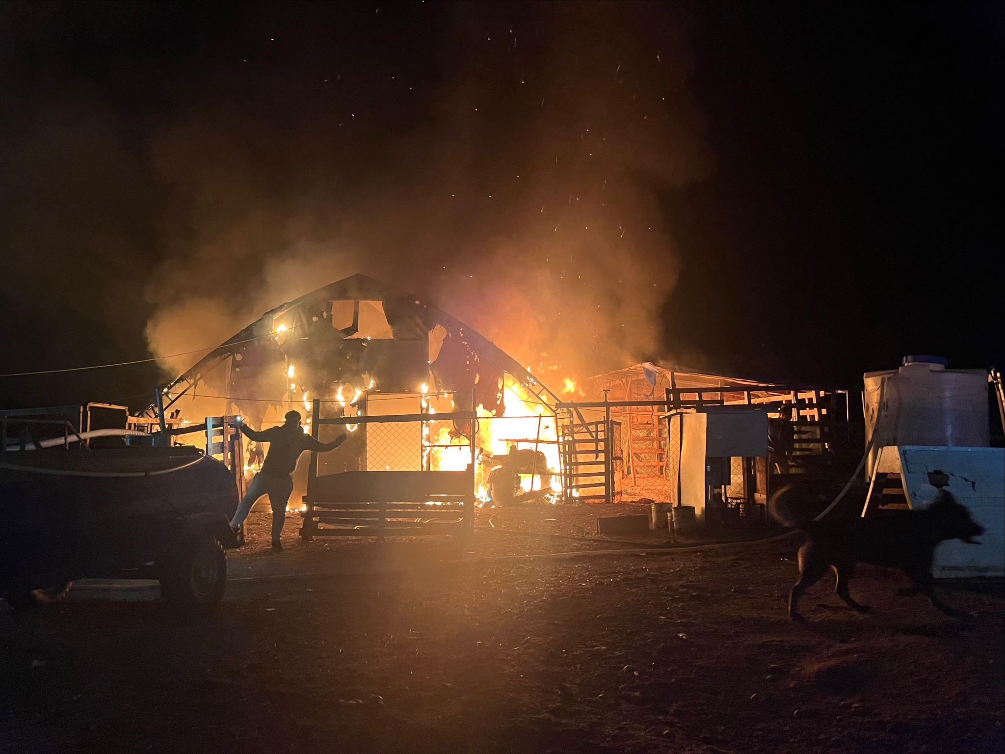Çiftliği kullanılamaz hale getiren yangının kesin çıkış nedeni araştırılıyor.