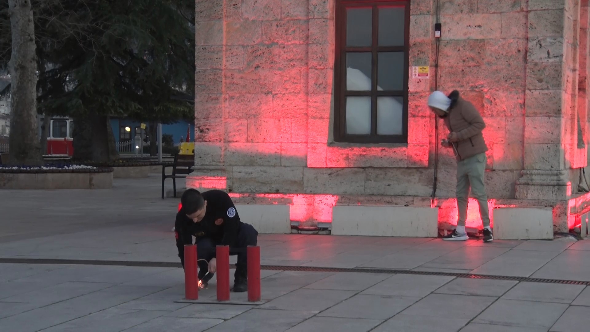 Bursa Büyükşehir Belediyesi İtfaiye Daire Başkanlığı ekipleri, iftar ve sahur vakitlerinde Tophane'de ses bombasını kontrollü şekilde patlatarak vatandaşlara zamanı duyuruyor.