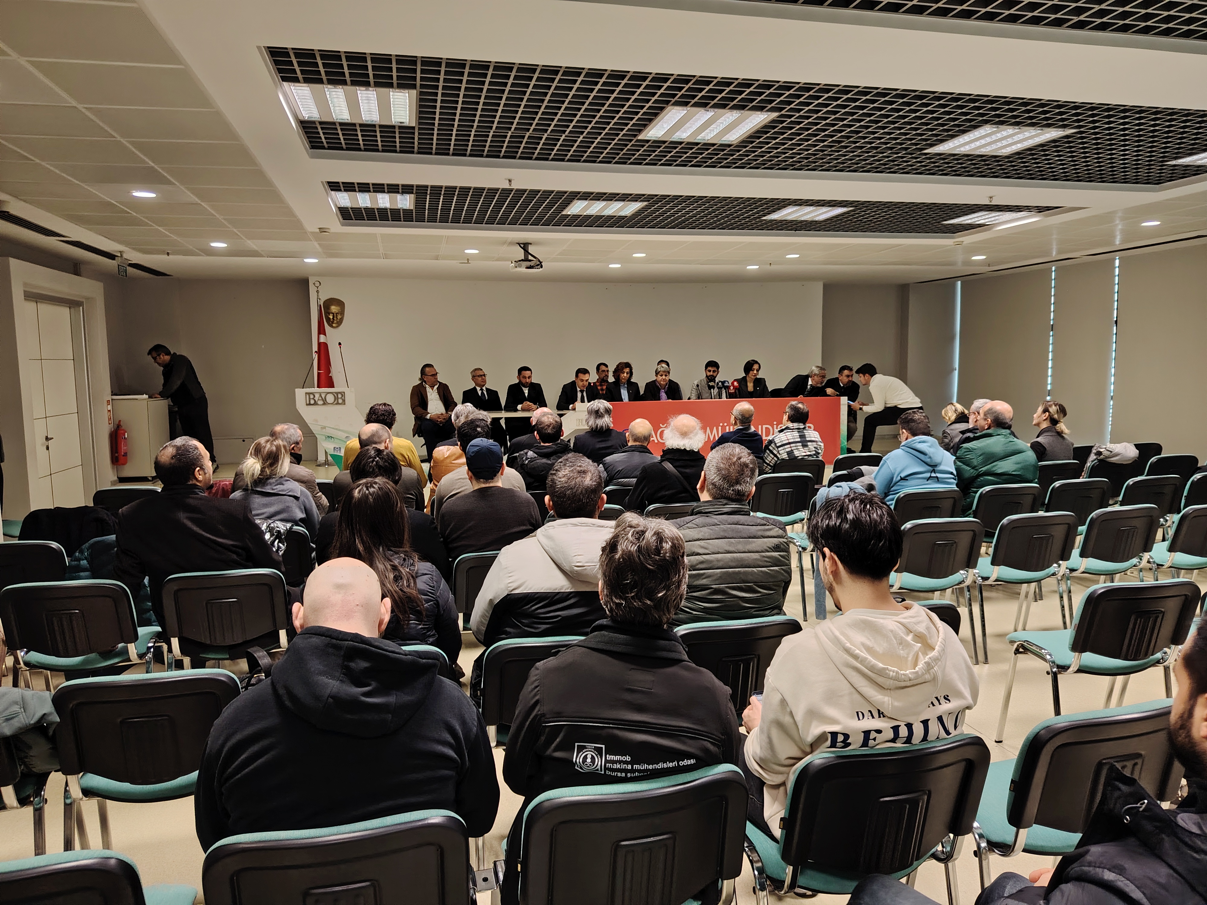 Çağdaş Mühendisler, TMMOB Makina Mühendisleri Odası (MMO) Bursa Şubesi 20. Dönem Yönetim Kurulu adaylık açıklamasını BAOB Ortak Salon’da gerçekleştirdi. Toplantıda yapılan açıklamada, mühendisliğin piyasaya teslim edilmesine karşı kamucu, toplumcu ve bağımsız bir mühendislik anlayışının savunulacağı vurgulandı.