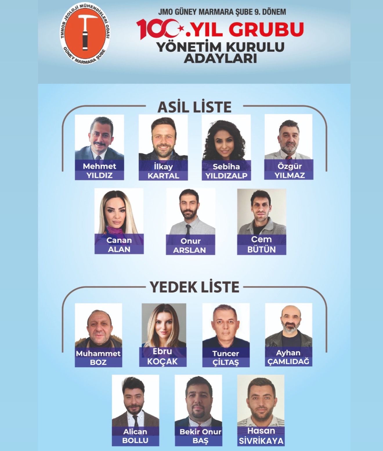 Jeoloji Mühendisleri Odası Güney Marmara Şubesi’nin Bursa’da gerçekleştirilen seçimlerinde, Mehmet Yıldız liderliğindeki 100. Yıl Grubu oyların çoğunluğunu alarak yeniden yönetime geldi.