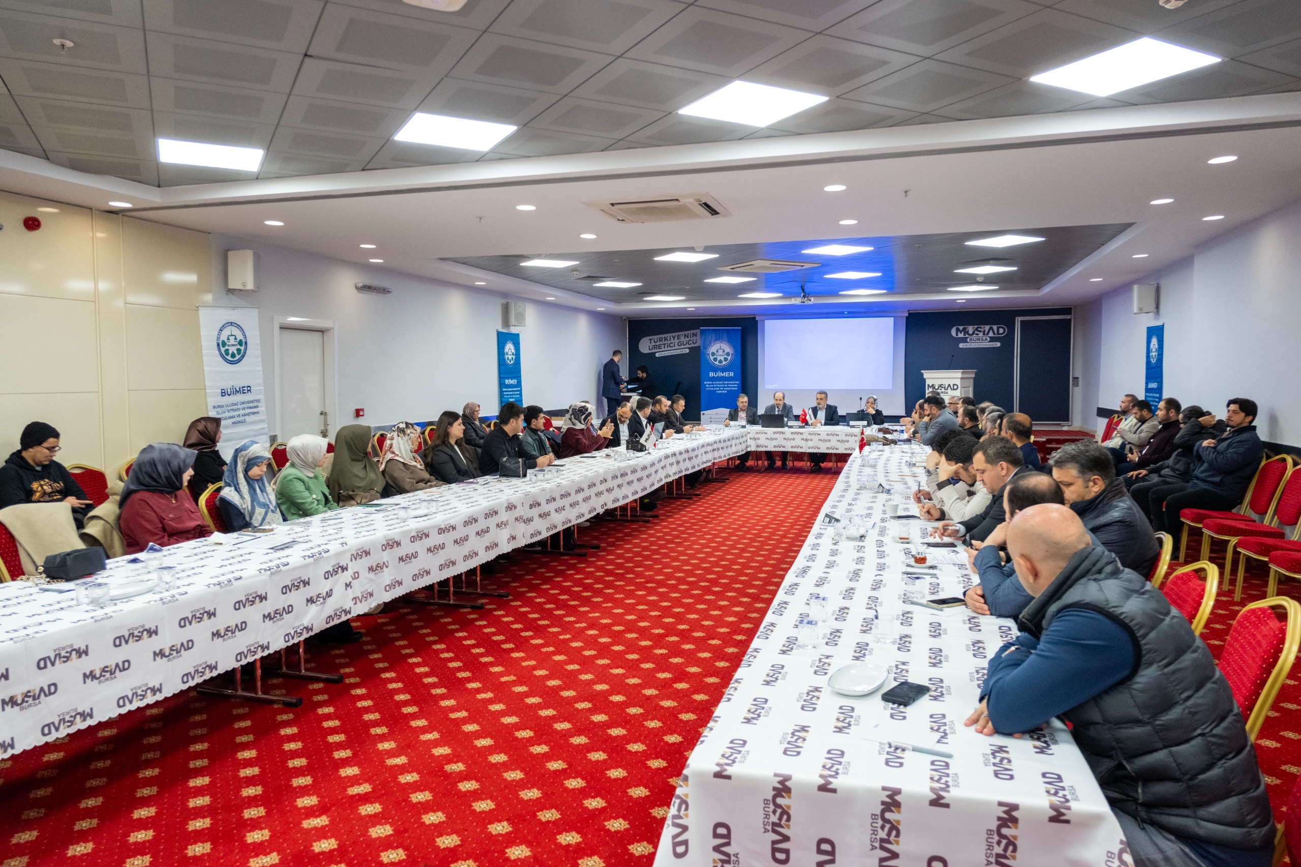 BUİMER Müdürü Doç. Dr. Mücahit Özdemir ise merkezin kuruluş vizyonunun üniversitedeki teorik birikimi iş dünyasının pratik tecrübesiyle buluşturmak olduğunu belirtti. Bursa’nın sanayi ve tarım potansiyeline dikkat çeken Özdemir "Üniversitemizde 2019 yılından bu yana lisansüstü seviyede devam eden İslam iktisadı ve finansı çalışmalarımızı, bu yılın Ağustos ayında resmî olarak kurulan BUİMER ile daha kurumsal bir yapıya kavuşturduk. Bu süreçte bizlerden desteğini esirgemeyen Rektörümüz Prof. Dr. Ferudun Yılmaz hocamıza şükranlarımızı sunuyoruz. Merkez olarak amacımız; akademik bilgiyi kampüs sınırları içinde tutmak değil, sahaya yaymak ve iş dünyasıyla entegre etmektir. Bu vizyon doğrultusunda ilk dışa dönük programımızı MÜSİAD Bursa Şubesi ile gerçekleştiriyoruz. Bugün odak noktamız, acil bir ihtiyaç olan 'konut ve iş yeri edinimi'. Ancak kooperatifçilik sadece inşaattan ibaret değil. Bursa aynı zamanda güçlü bir tarım şehri. Allah nasip ederse ikinci dönemde tarımın finansmanına odaklandığımız ve kooperatifçiliğin de sunduğu imkanları ele aldığımız alt başlığı da içeren bir çalıştay daha planlıyoruz. Bu çalıştay programlarını tek taraflı bir sunum olarak değil, siz değerli katılımcıların tecrübelerinin de aktarıldığı bir müzakere ortamı olarak tasarladığımızı vurgulamak isterim." diye konuştu.