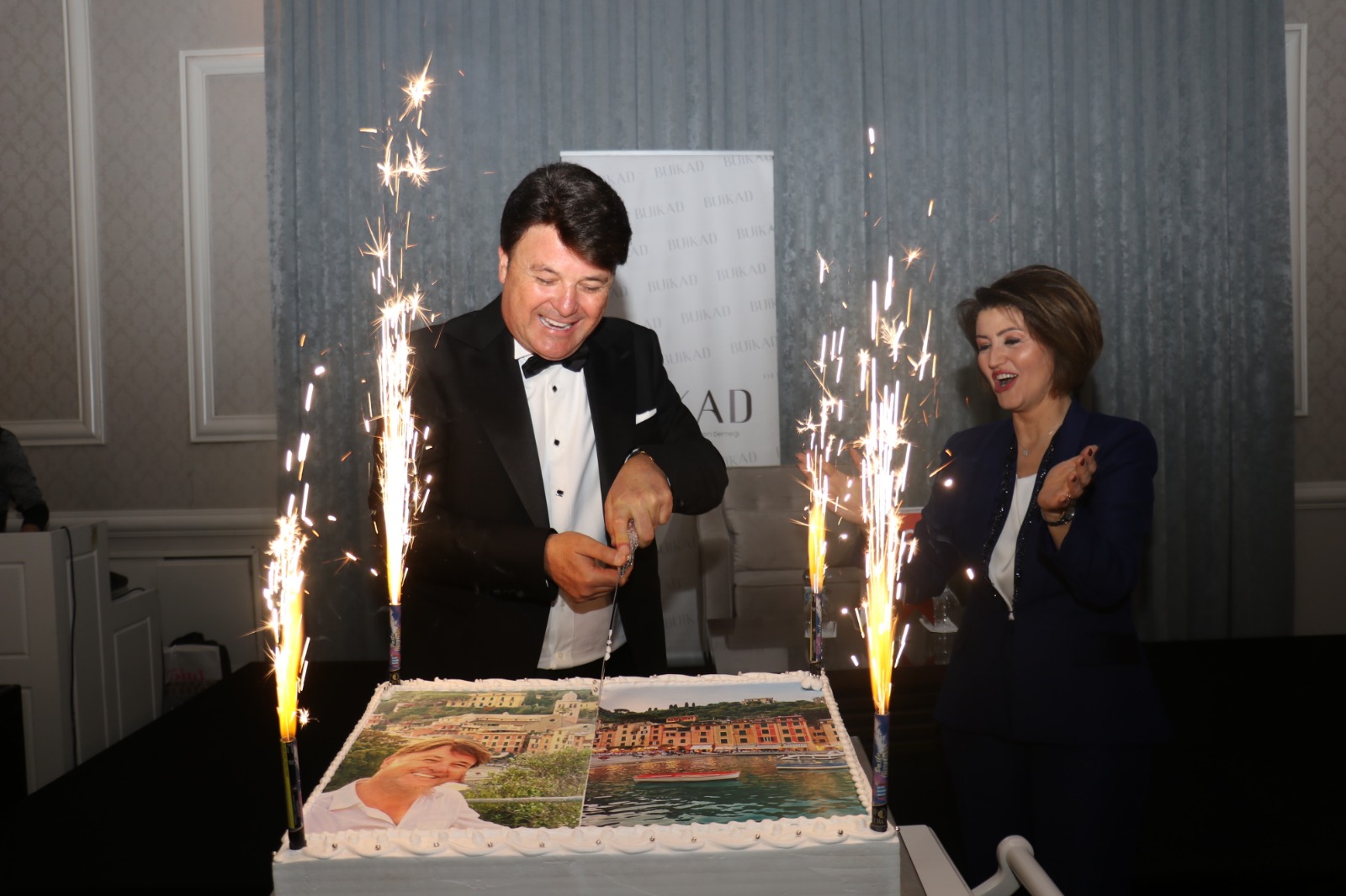 Tonguç, plâket takdiminin ardından doğum günü sürprizi yaşadı. BUİKAD yönetimi şubat ayı sonunda 60 yaşına girecek olan Tonguç’a, üzerinde Tonguç’un ve seyahatte bulunduğu İtalya’nın tatil beldesi Portofino’nun fotoğrafının bulunduğu doğum günü pastası jestinde bulundu.