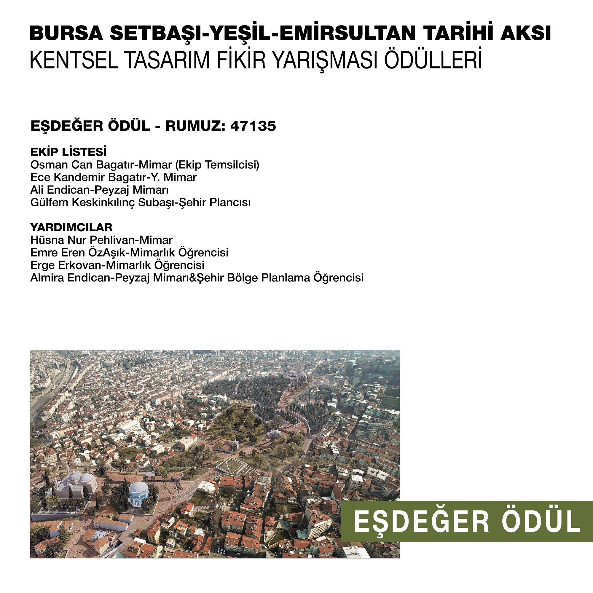 Yıldırım Belediyesi'nin Türkiye’nin en önemli turizm güzergahlarından biri olan, Setbaşı, Yeşil, Emirsultan hattını hak ettiği değere kavuşturmak için düzenlediği ‘Bursa Setbaşı-Yeşil-Emirsultan Tarihi Aksı Kentsel Tasarım Fikir Yarışması’ sonuçları belli oldu.