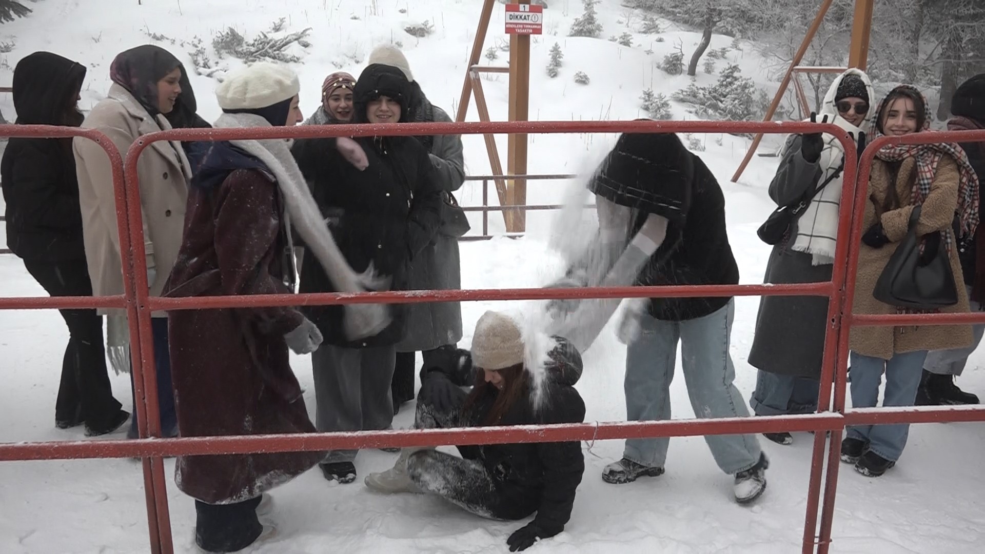 Zirveye İstanbul'dan geldiklerini belirten öğrenciler, çok güzel kar yağdığını ve mutlu olduklarını söyledi.