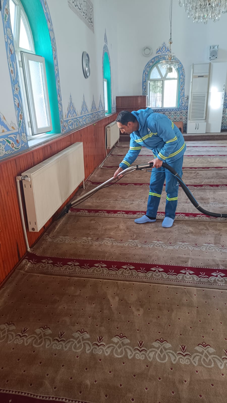 Temizlik İşleri Müdürlüğü ekipleri tarafından yürütülen çalışmalar kapsamında cami içleri ve çevrelerinin temizliği titizlikle yapılıyor. Belediye ekipleri, cami içlerinde genel temizlik yaparken cami bahçelerinde ise çöp toplama, süpürme ve yıkama işlemleri gerçekleştiriyor. Ayrıca oturma alanları, şadırvanlar ve abdesthaneler de detaylı bir şekilde dezenfekte ediliyor.