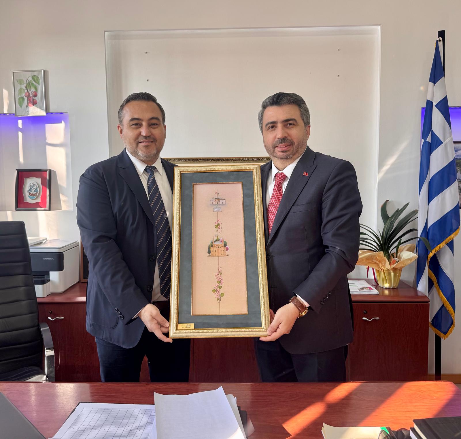 Batı Trakya temasları kapsamında Gümülcine Başkonsolosu Aykut Ünal ile makamında bir araya gelen Yıldırım Belediye Başkanı Oktay Yılmaz ve beraberindekiler, daha sonra Gümülcine Müftüsü İbrahim Şerif, Gümülcine Türk Gençler Birliği Başkanı Sedat Hasan’ın ziyaret etti. Temaslarına İskeçe’de devam eden heyet, İskeçe Müftüsü Mustafa Trampa ve Yassıköy Belediye Başkanı Caner İmam’ı ziyaret ettikten sonra Ketenlik’te iftar sofrasında soydaşlarla bir araya geldi. Her Ramazan ayında Batı Trakya’yı ziyaret ettiğini hatırlatan Yıldırım Belediye Başkanı Oktay Yılmaz, “Bizim Batı Trakya’yla gönül bağımız olduğu kadar, beşerî bağlarımız var. Yıldırım on binlerce Batı Trakyalı kardeşimize ev sahipliği yapıyor. Ailelerin bazı fertleri burada bazıları ise Yıldırım’da. Biz aynın ailenin mensuplarıyız. Siz burada ne kadar mutlu huzurlu olursanız, bizler Bursa’da o kadar rahat oluruz” diye konuştu.