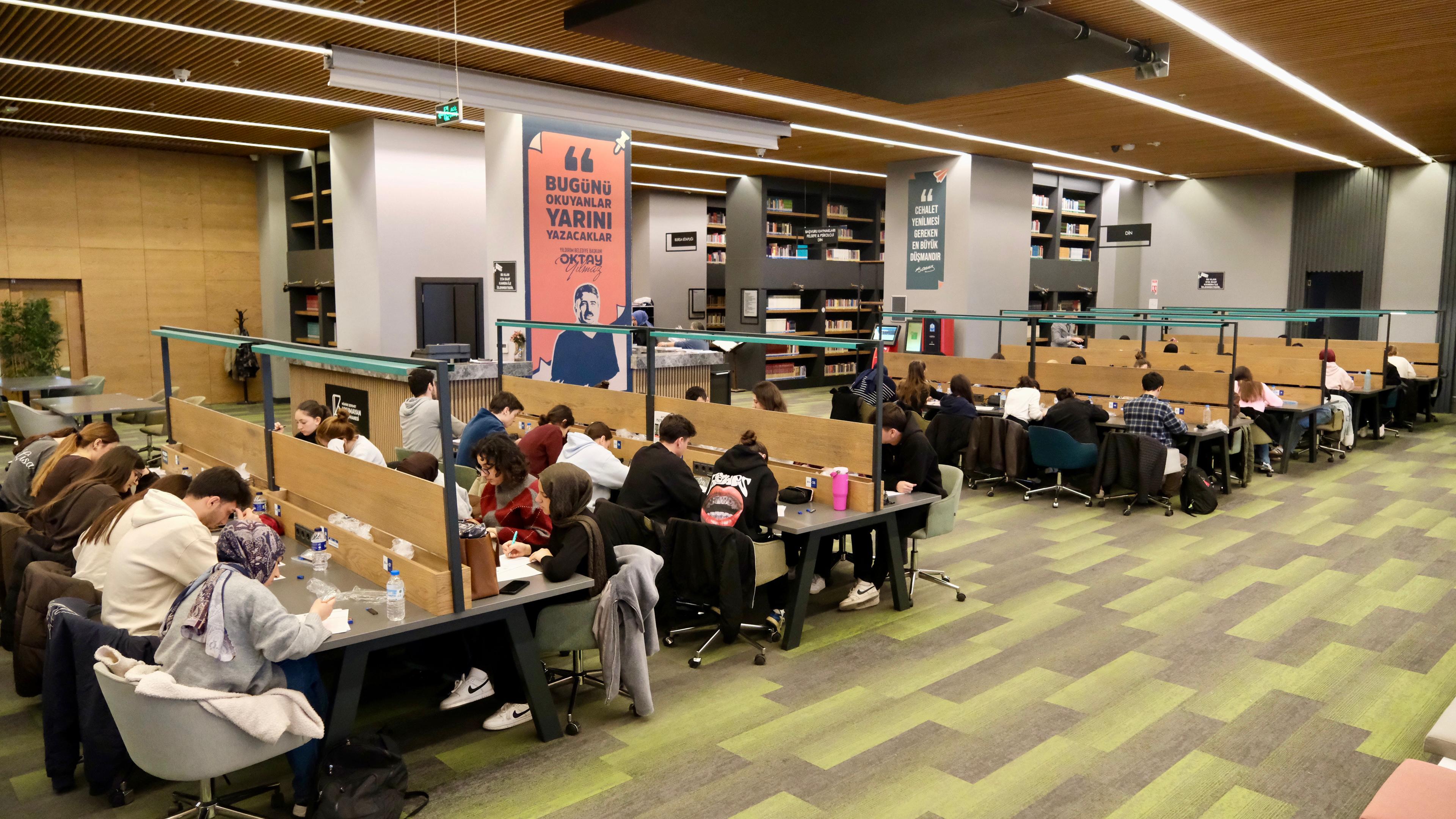 Yıldırım Belediyesi, üniversiteye hazırlanan gençler için dört farklı kütüphanede eş zamanlı ücretsiz YKS deneme sınavı düzenledi; 454 öğrencinin katıldığı sınav, gerçek sınav atmosferinde yapılarak hem bilgi ölçümü hem de stres yönetimi imkânı sundu. Belediye Başkanı Oktay Yılmaz, gençlerin eğitim yolculuğunda desteklerin artarak süreceğini vurguladı.