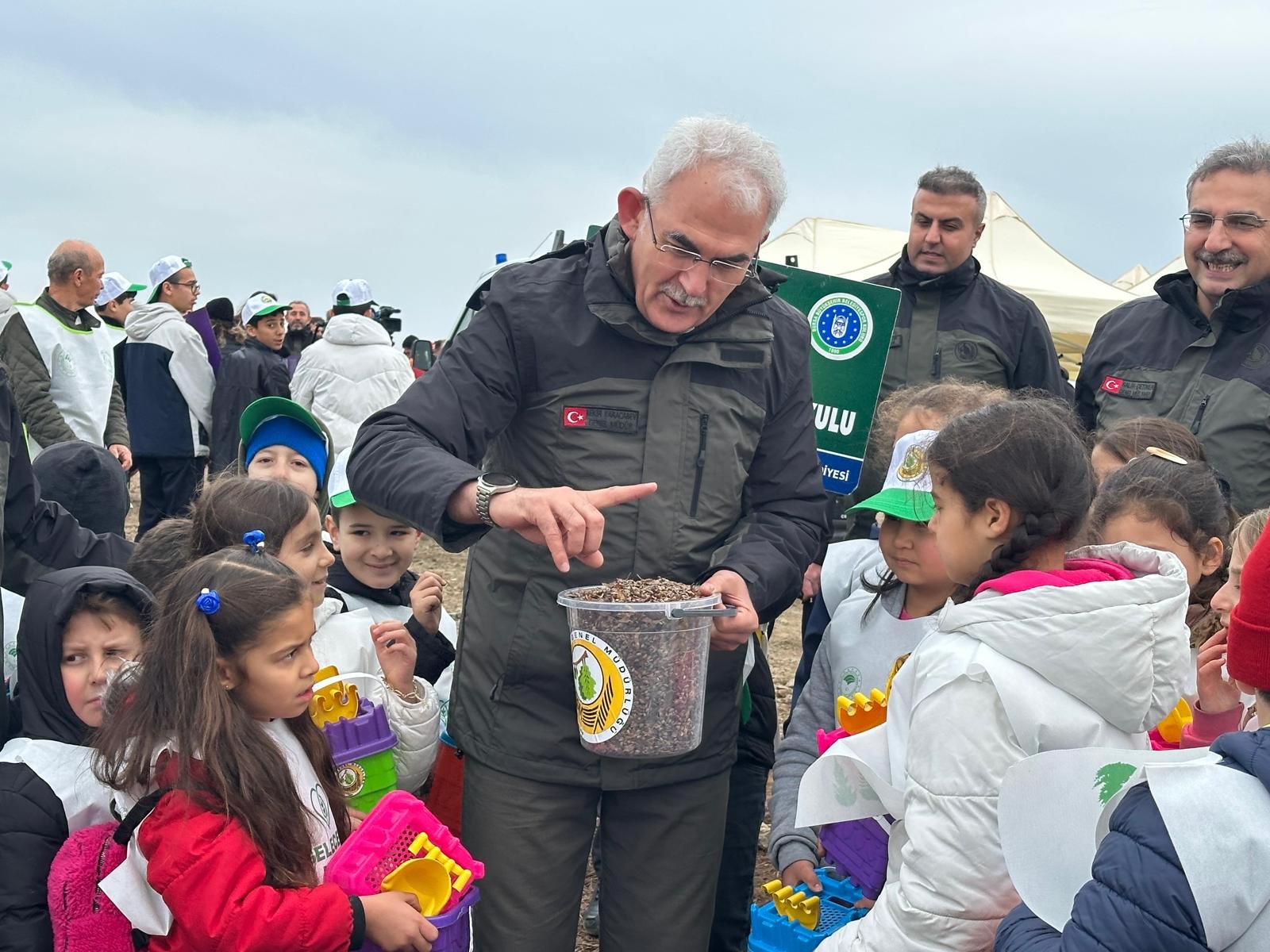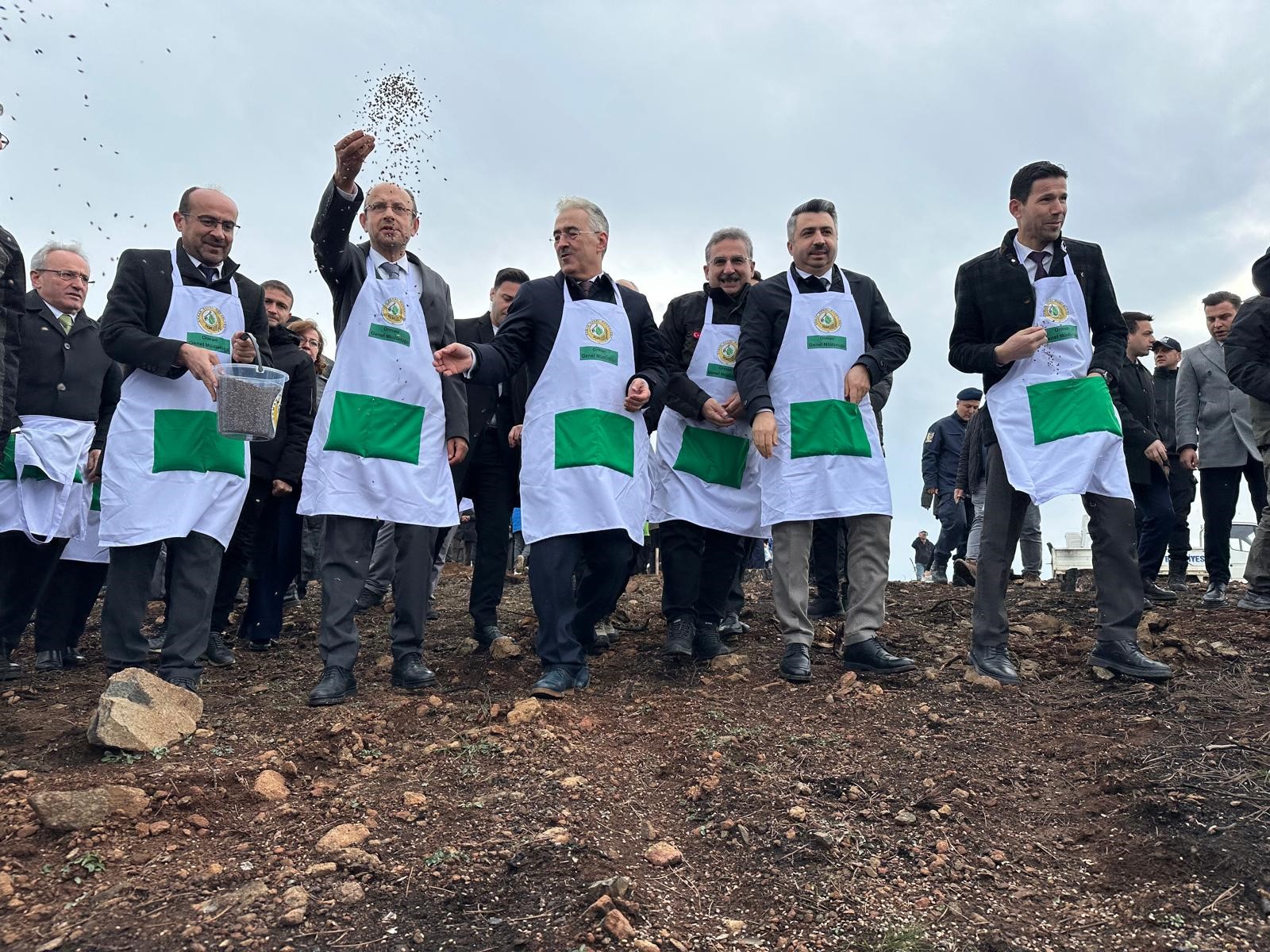 Konuşmaların ardından Bursa Valisi Erol Ayyıldız, AK Parti İl Başkanı Davut Gürkan, Karacabey, Şahan, çocuklar ve diğer törene katılanlar, hazırlanan alana tohum serpti.