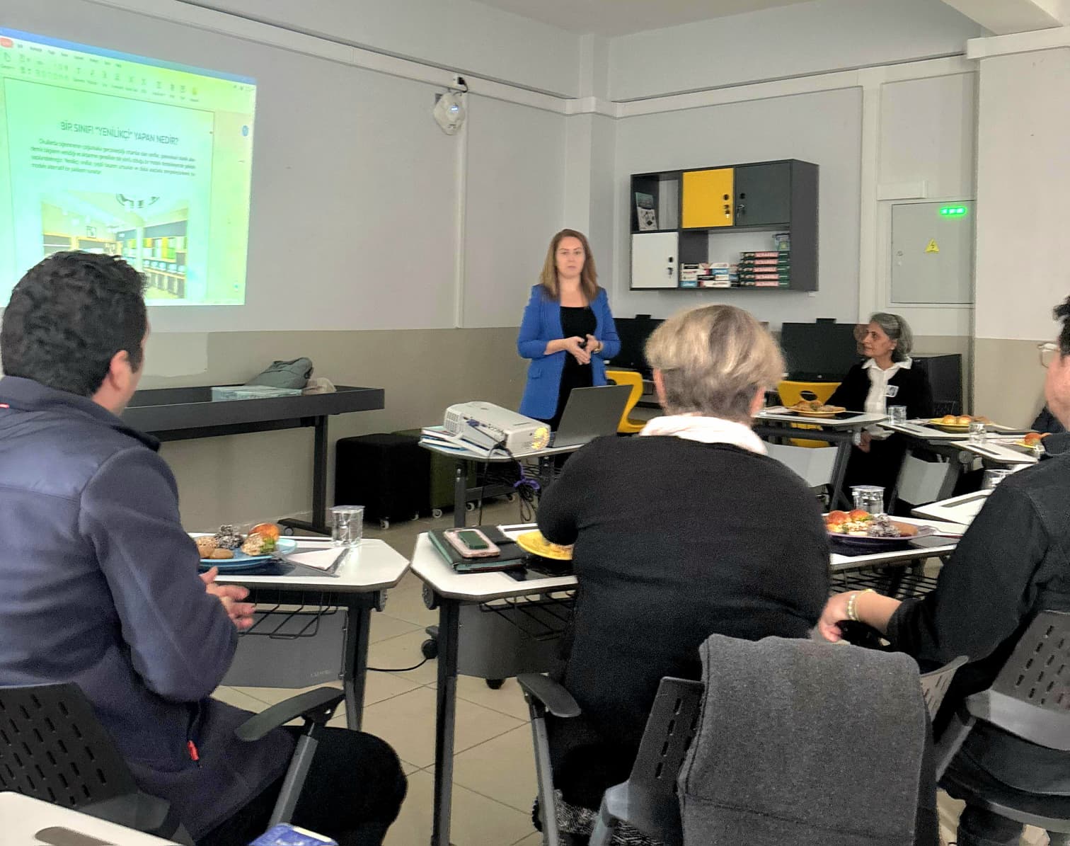 BUÜ Eğitim Fakültesi öğretim üyeleri Prof. Dr. Rüçhan Uz ve Dr. Öğr. Üyesi Abdullah Açar ile yüksek lisans öğrencileri, sınıfın teknolojik altyapısı ve pedagojik tasarımını ayrıntılarıyla inceleme fırsatı buldu. İnceleme sırasında, “Türkiye Yüzyılı Maarif Modeli” çerçevesinde öğrencilerin beceri eğitimi ve sosyal öğrenme süreçlerini destekleyen alanlar üzerine akademik değerlendirmeler gerçekleştirildi.