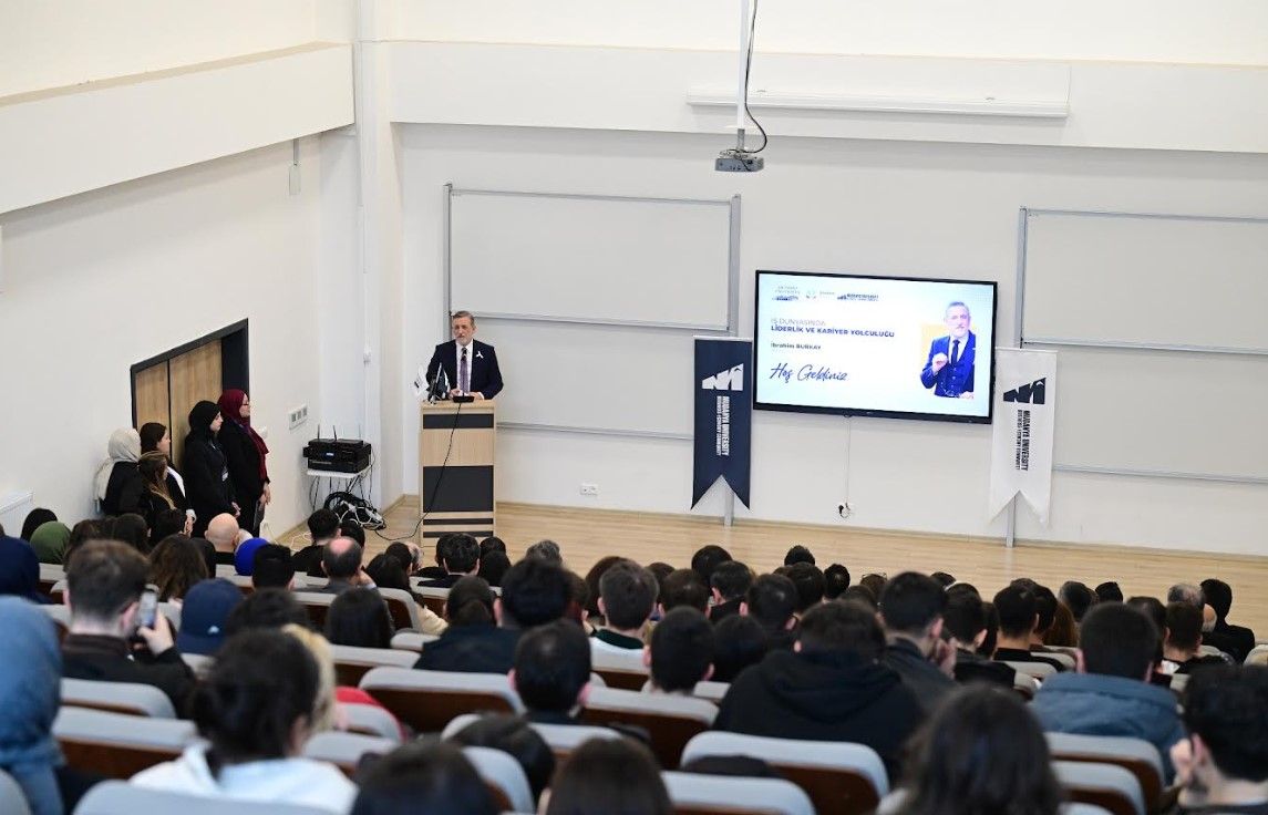 Mudanya Üniversitesi Konferans Salonu’nda düzenlenen etkinliğe Mudanya Üniversitesi Mütevelli Heyeti Başkanı Gıyasettin Bingöl, Mudanya Üniversitesi Rektörü Prof. Dr. Emin Karip, Mudanya Üniversitesi Danışma Kurulu Başkanı Prof. Dr. Ahmet Saim Kılavuz, akademisyenler, BTSO Yönetim Kurulu ve Meclis Üyeleri ile öğrenciler katıldı. Etkinliğin açılış konuşmasını yapan Mudanya Üniversitesi Rektörü Prof. Dr. Emin Karip, Bursa’nın sektörlerinde öne çıkan seçkin isimleri üniversitelerinde ağırlamaktan memnuniyet duyduklarını belirterek, İbrahim Burkay’a katılımı için teşekkür etti. Öğrencileri eğitim aldıkları bölümlere ilişkin sektörlere en iyi şekilde hazırlamak amacıyla teorik derslerin yanı sıra uygulamalı çalışmalara da büyük önem verdiklerini ifade eden Karip, “Bu kapsamda Bursa iş dünyası ile güçlü iş birlikleri yürütüyoruz. En kıymetli paydaşlarımızdan biri de Bursa Ticaret ve Sanayi Odası. İmzaladığımız protokollerle her zaman bizlere önemli katkılar sağlıyorlar. Etkinliğin düzenlenmesinde emeği geçen herkese teşekkür ediyorum.” dedi.
