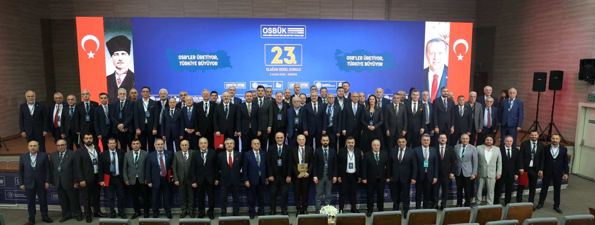 OSBÜK'ün 23'üncü Olağan Genel Kurul Toplantısı, Sanayi ve Teknoloji Bakanı Mehmet Fatih Kacır'ın katılımıyla KOSGEB Konferans Salonu'nda gerçekleştirildi.