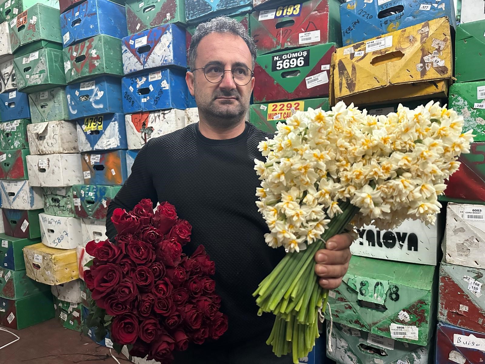 Bursa'da mezatta normalde 300 koli çiçek satışı olurken, çarşamba mezatında bin koliye çıktığını vurgulayan Tan, "Sevgililer Günü'nde en çok kırmızı gül ve kokusu dolayısıyla nergis tercih ediliyor. Bunların yanı sıra papatya, orkide ve kazablankalar da satılıyor. Üretim bölgelerimiz var. Antalya, İzmir, Yalova, Adana-Mersin bölgesinden geliyor çiçekler. Güller genellikle Adana-Mersin bölgesinden geliyor. İzmir'den buketlik papatya, kasımpatı; Yalova'dan kazablanka, şebboy gibi bitkiler geliyor" diye konuştu.