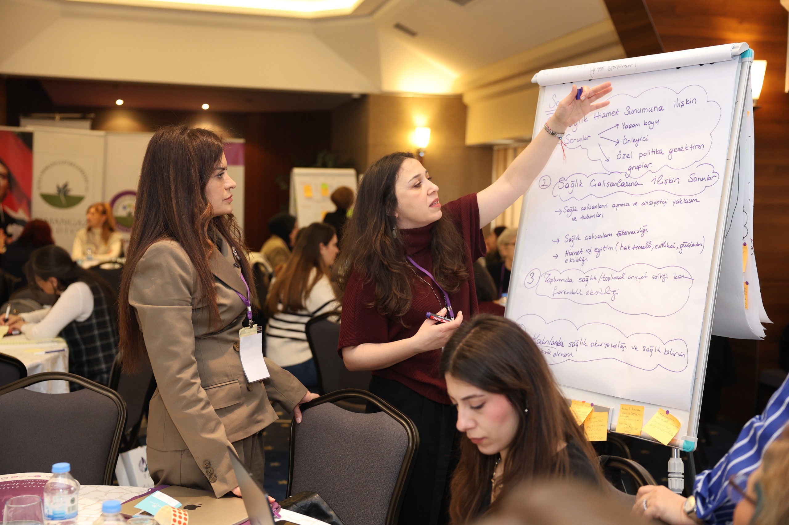 Çalıştay boyunca 5 ana masa ve 15 alt masa olmak üzere toplam 20 masada yürütülen yoğun tartışmalar ve atölye çalışmaları ile birçok başlıkta kapsamlı değerlendirmeler yapıldı. Kadın girişimciliği ve kooperatifçilik alanında; finansman ve destek mekanizmaları, kooperatif yönetimi ve sürdürülebilirlik ile eğitim ve mentorluk konularında önemli öneriler geliştirildi. Yerel yönetimlerde kadın politikaları kapsamında kadın dostu şehir tasarımı, kadın temsili ve liderlik ile sosyal hizmetlerin güçlendirilmesine yönelik somut adımlar ele alındı. Eğitim ve teknoloji başlığında dijital okuryazarlığın artırılması, teknolojiye erişimin kolaylaştırılması, STEM alanlarında kadınların güçlendirilmesi ve eğitim fırsatlarının yaygınlaştırılması konuları öne çıktı. Kadınların sosyal güvenliği ve sağlığı alanında şiddetle mücadele ve rehabilitasyon, sağlık hizmetlerine erişim, önleyici sağlık uygulamaları ile psikolojik destek mekanizmaları detaylı şekilde değerlendirildi. Kadın istihdamı ve çalışma hayatı başlığında ise kadın istihdamının artırılması, sosyal destekler, kadın dostu iş yerleri ve kurumsal politikalar ile kadınların emek ve meslek örgütlerindeki hakları ve temsiliyeti üzerine kapsamlı öneriler ortaya kondu.