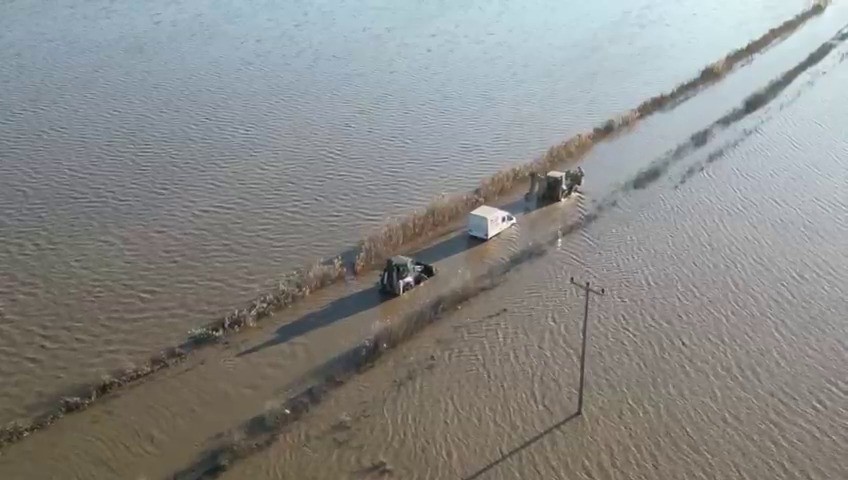 Öte yandan, taşkın nedeniyle binlerce dönüm ekili tarım arazisi de sular altında kaldı. Çiftçiler büyük zarar yaşarken, yetkililer, yolun geçici süreyle ulaşıma kapatılacağını bildirerek vatandaşlara alternatif güzergahları kullanmaları yönünde uyarıda bulundu.
