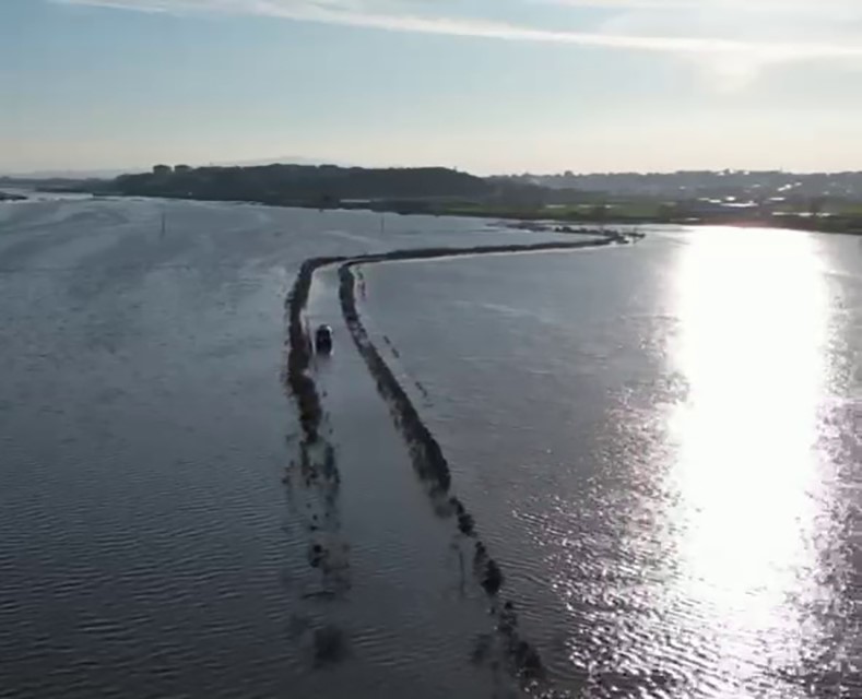 Bursa'nın Karacabey ilçesinde eriyen kar sularının dereyi taşırması sonucu yol sular altında kaldı. Araçta mahsur kalan vatandaş ekiplerce kurtarılırken, binlerce dönüm ekili tarım arazisi sular altında kaldı. O anlar dron ile görüntülendi.
