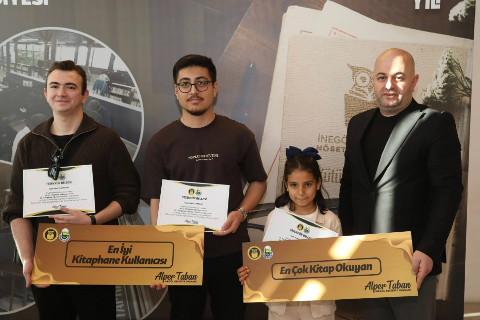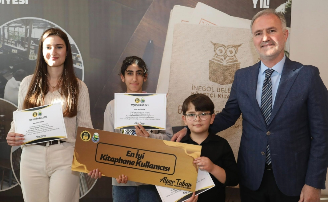 İnegöl Belediyesi, Kütüphaneler Haftası kapsamında 5 Nöbetçi Kitaphanenin En’lerini belirledi. “En Çok Kitap Okuyan” ve “En İyi Kullanıcı” seçilen öğrenciler, ödüllerini Belediye Başkanı Alper Taban’dan aldı.