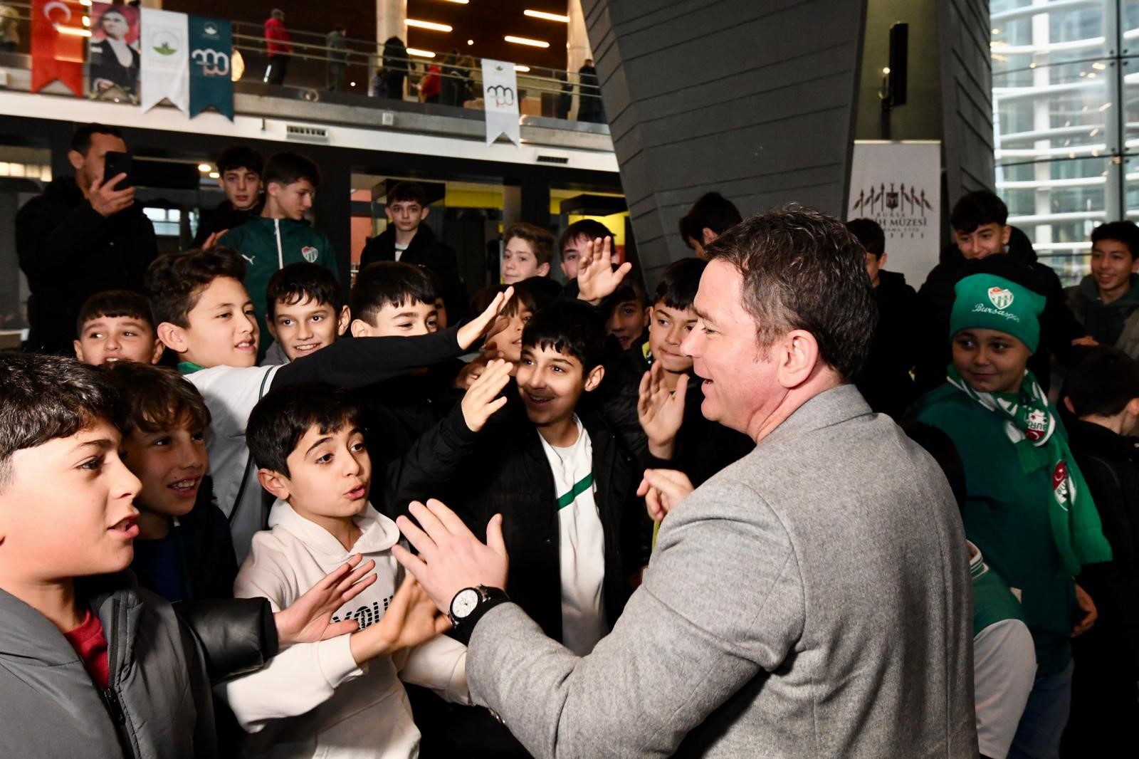 Bursaspor’un harika bir futbol oynayarak 3-0 kazandığı maçın ardından Hamitler ve Çırpan mahallelerinden gelen çocuklar büyük mutluluk yaşadı.